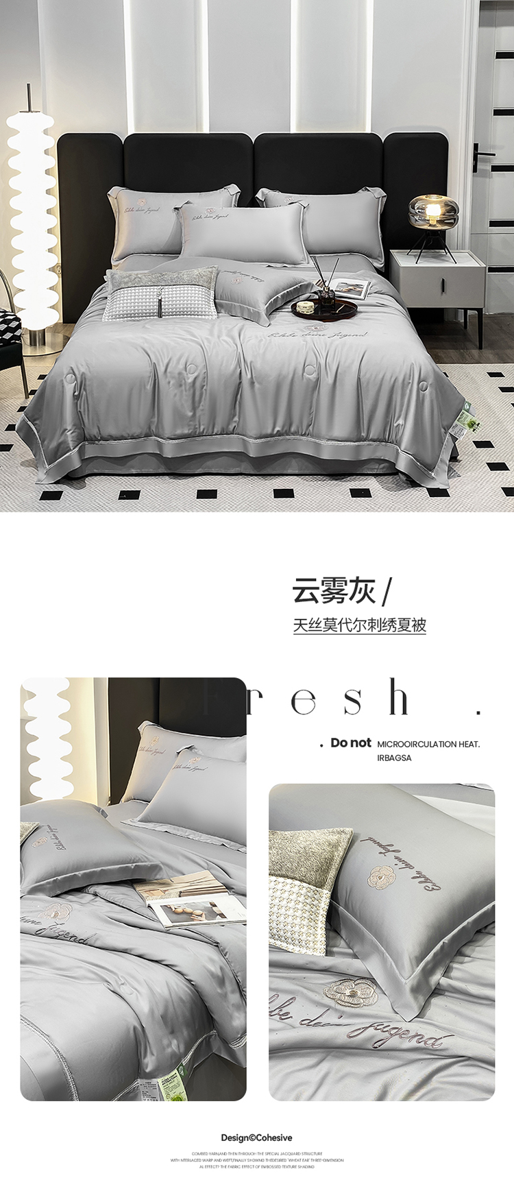 娇逸家居 2023莫代尔绣花烫钻款夏被-花言 云雾灰