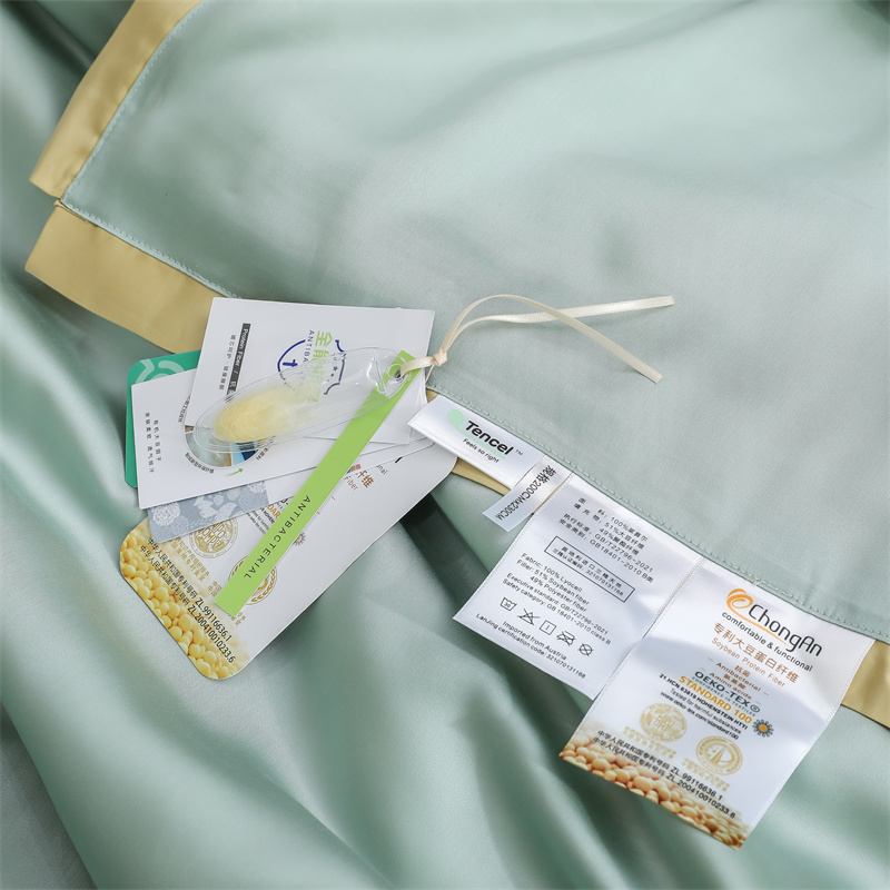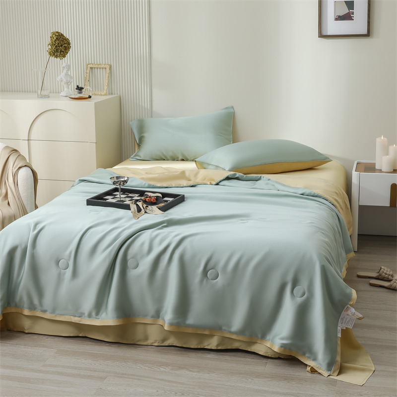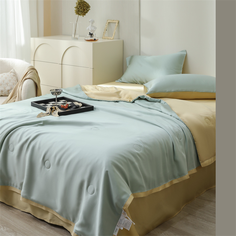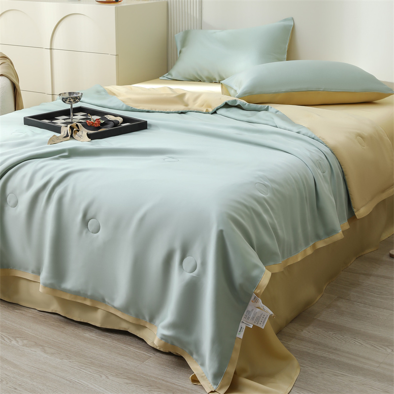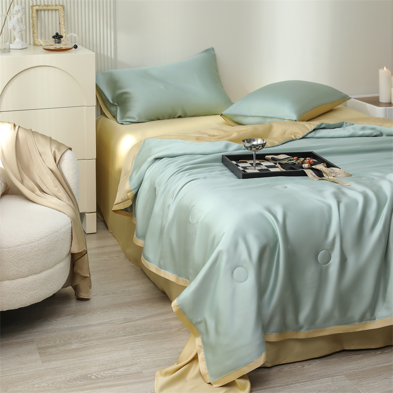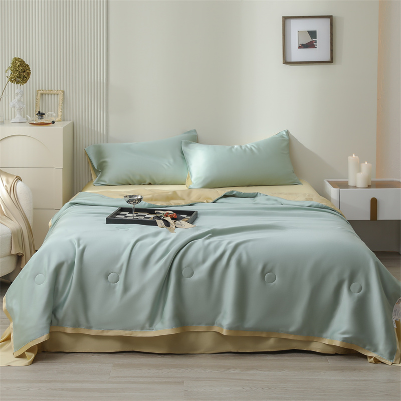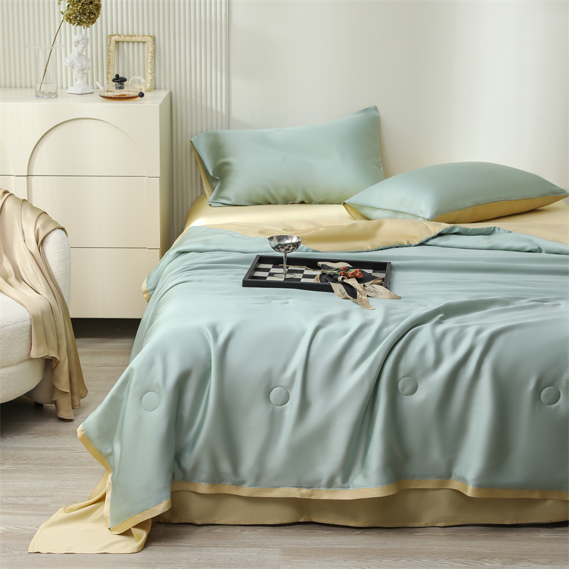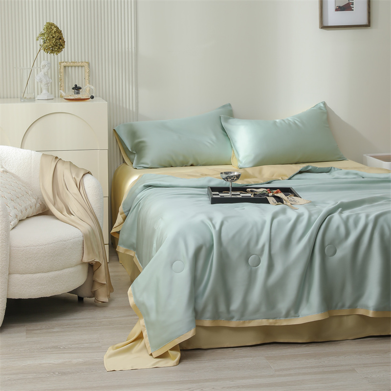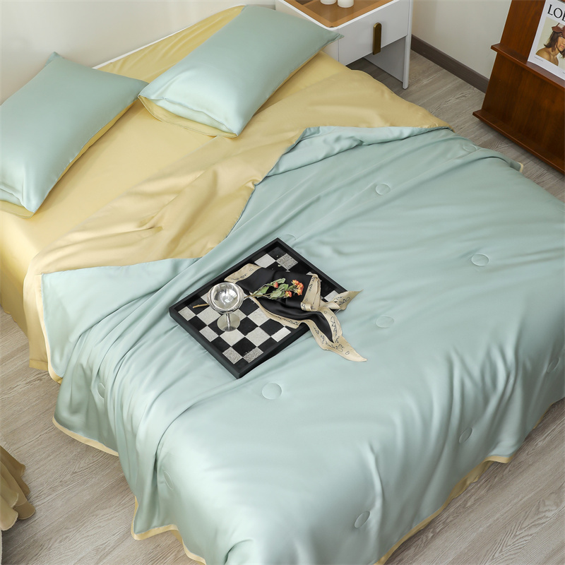 当前位置: 91家纺网 > 商品网购 > 床品套件 > 四件套 > 莱赛尔四件套 > 沐白家居202360S天丝纯色双拼夏被四件套被子被芯 浅艾绿-香槟金
