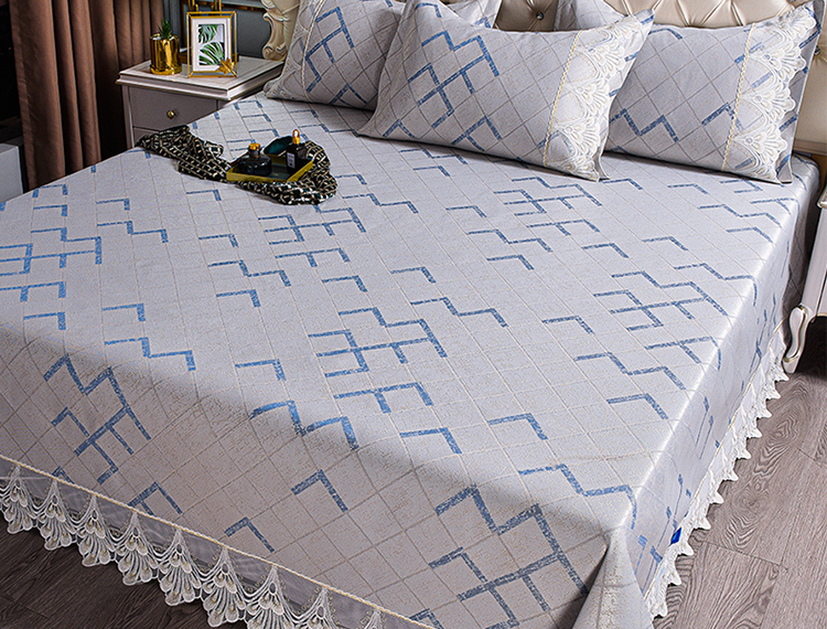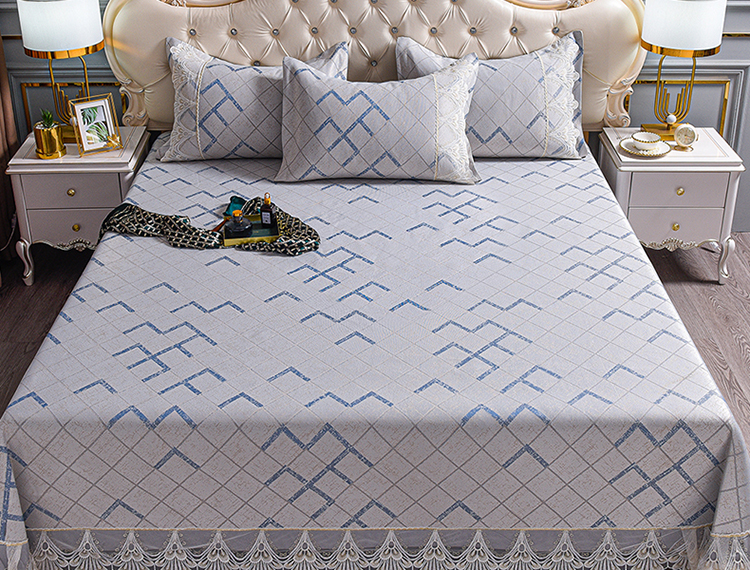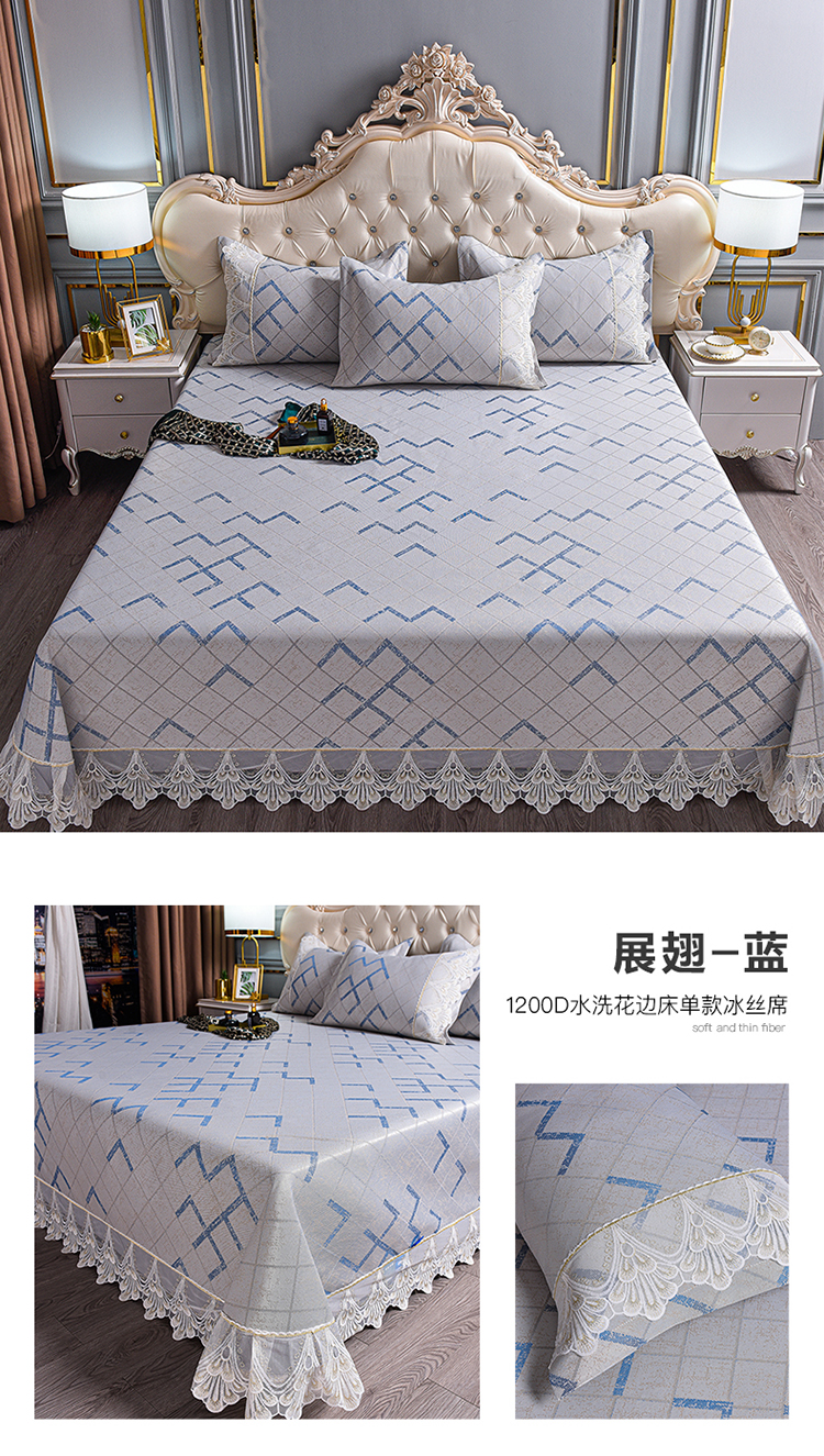 商品名称:印季家纺-2023新款1200D水洗冰丝花边床单款凉席 展翅-蓝
