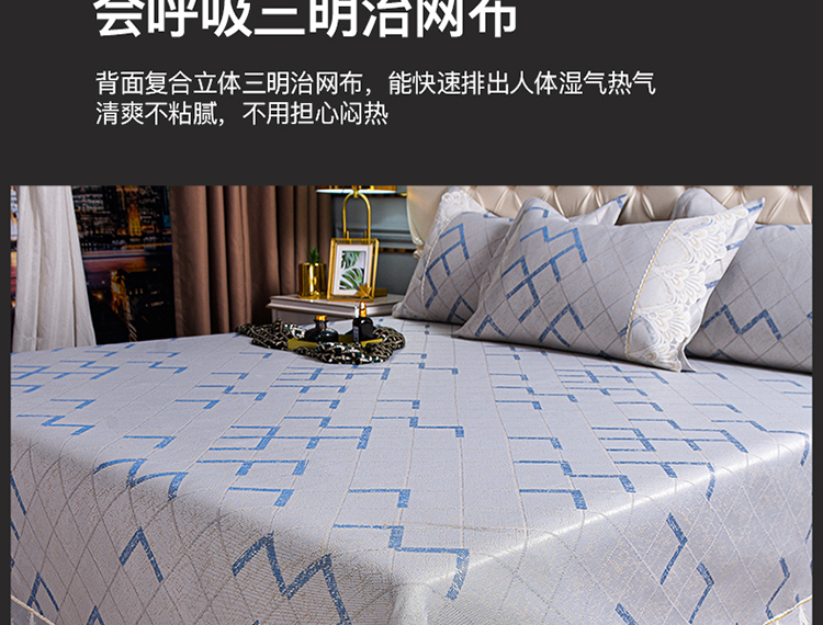 (总)印季家纺 2025新款轻奢简约凉感丝泡泡席-格调凉席,藏蓝,米黄,墨绿,浅粉,银灰