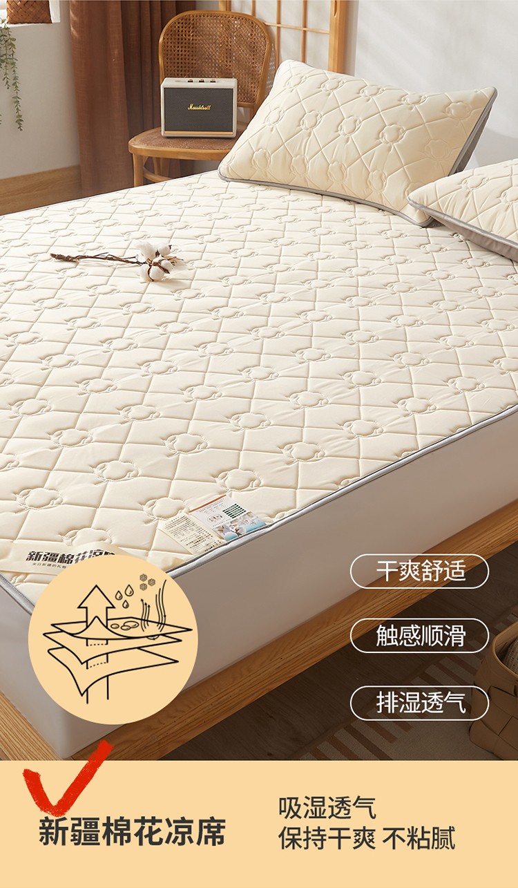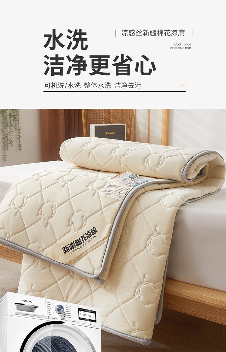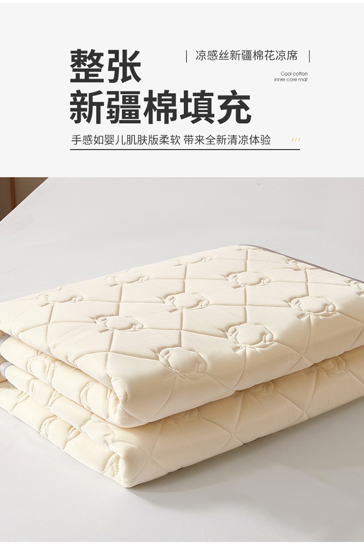 西域种棉人 新疆棉花凉席冰丝凉感丝平铺款加厚床单款三件套纯色水洗珍珠白