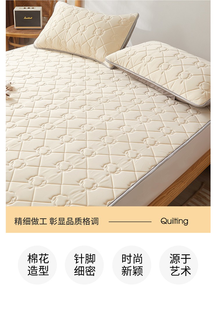 商品名称:西域种棉人 新疆棉花凉席冰丝凉感丝平铺款加厚床单款三件套纯色水洗珍珠白