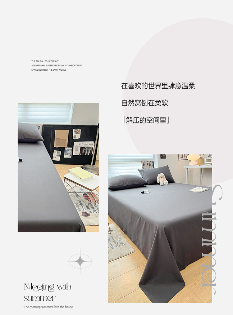 • 91家纺网 家纺一手货源 找家纺 莱登卡奴 2023新款全棉纯色单品床单枕套系列 床单-高级灰