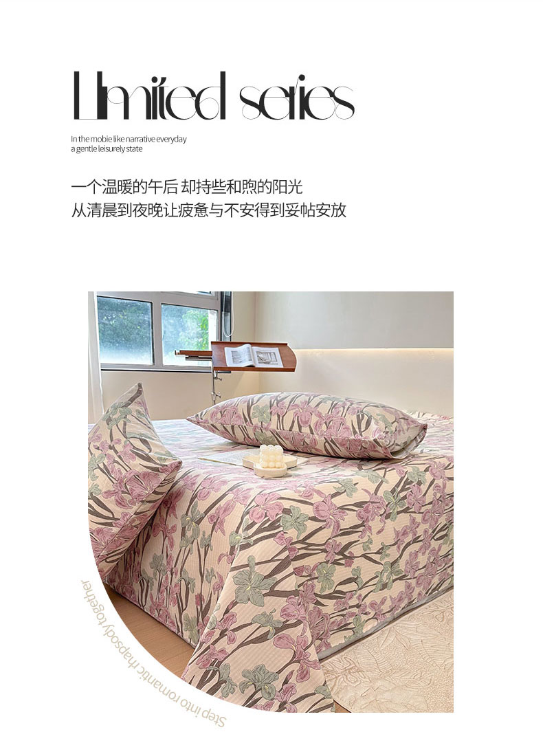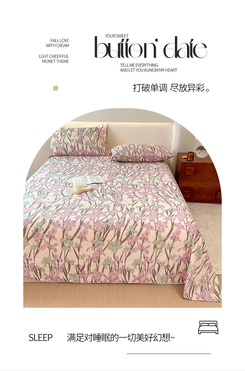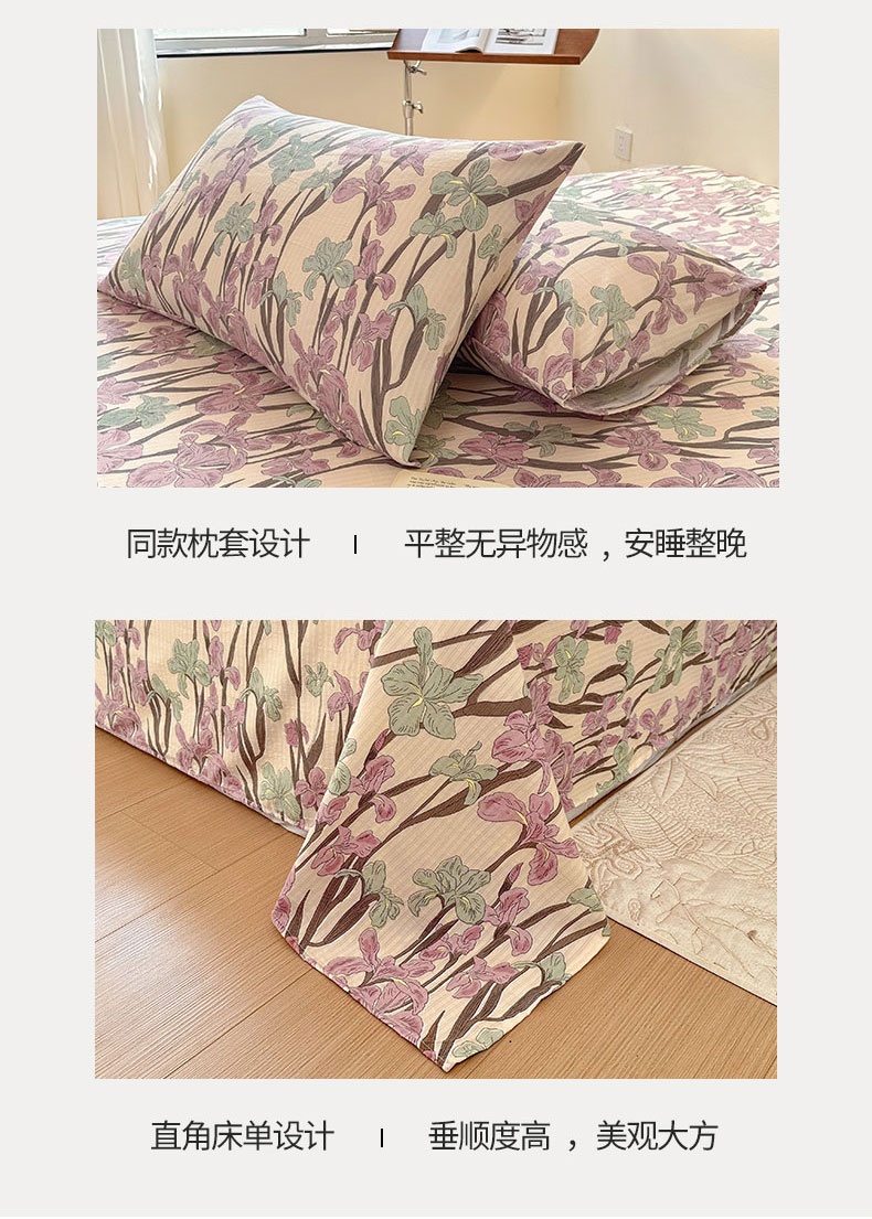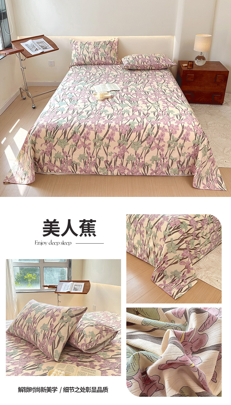 • 91家纺网 家纺一手货源 找家纺 火星时代 2023新款A类有氧提花小竺棉床单水洗棉粗布床单三件套 美人蕉