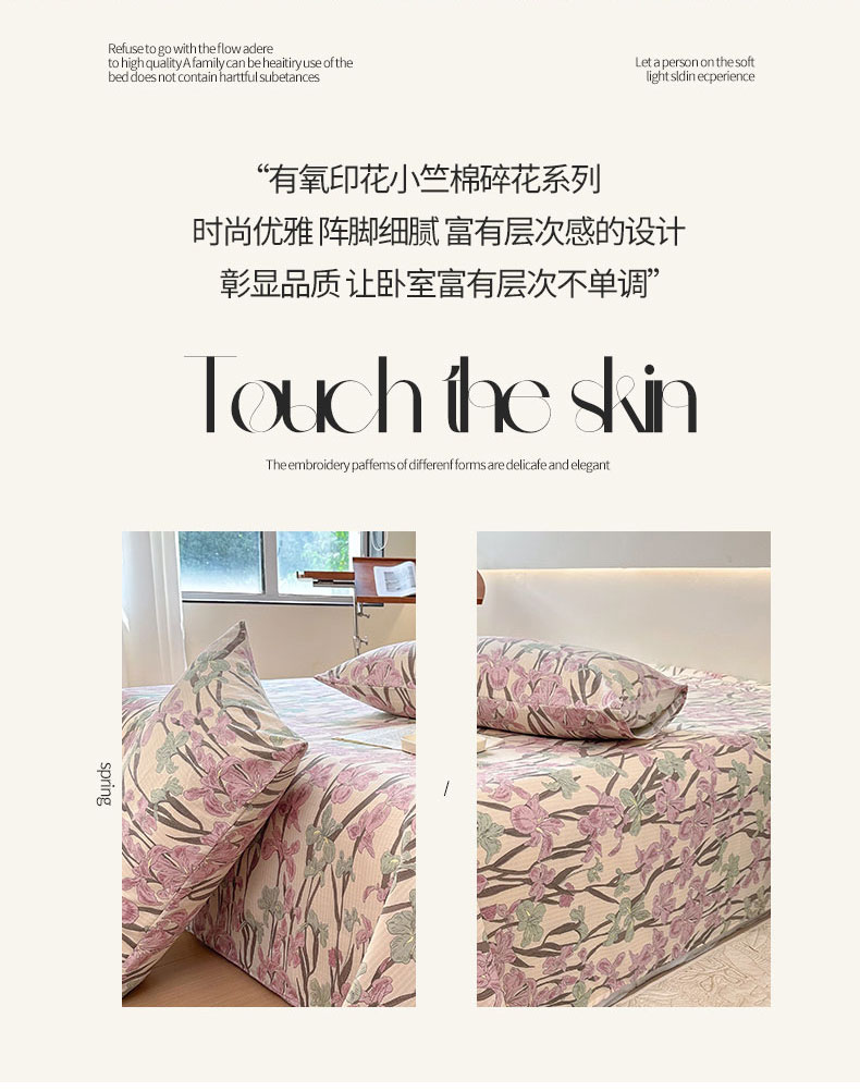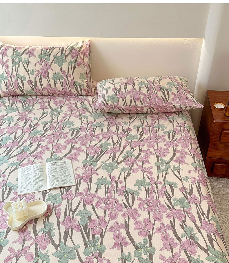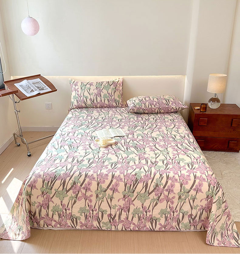 火星时代 2023新款A类有氧提花小竺棉床单水洗棉粗布床单三件套 美人蕉