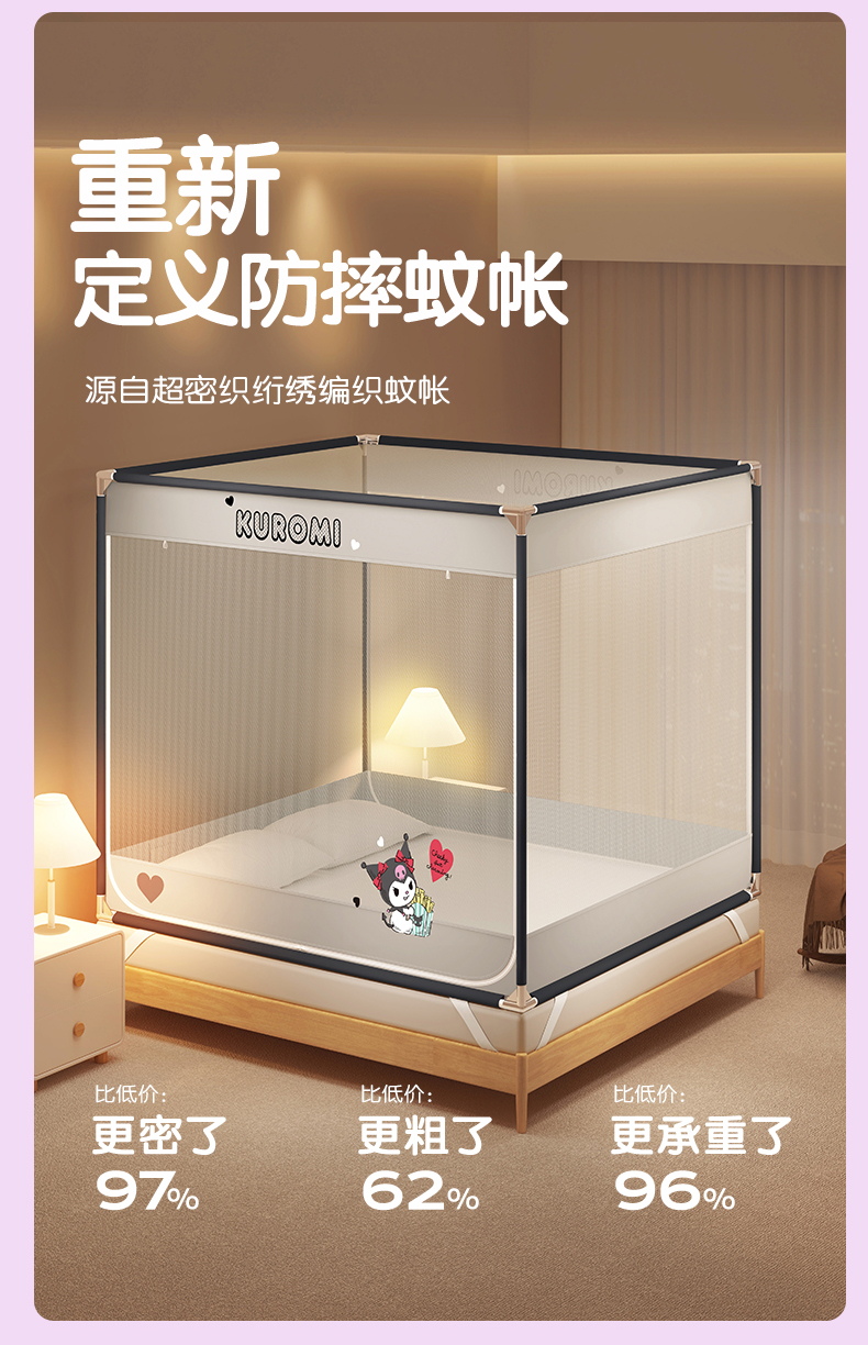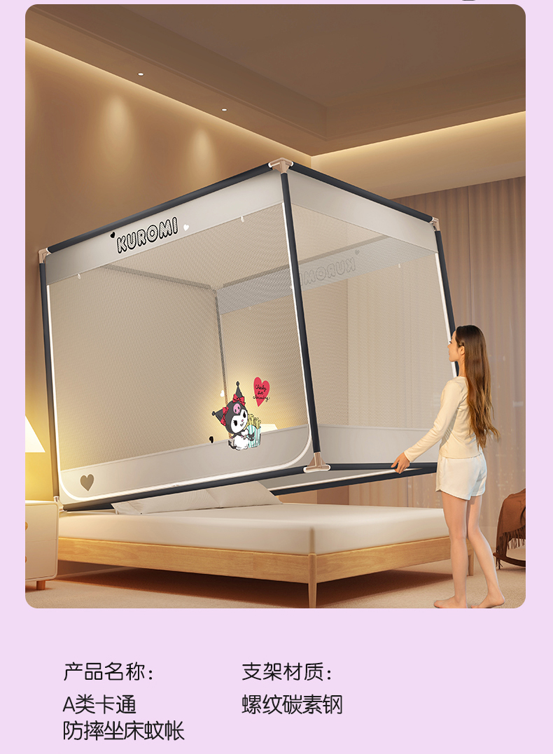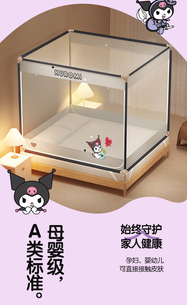 当前位置: 91家纺网 > 商品网购 > 床上用品 > 蚊帐 > 坐床式蚊帐 > 佳梦家纺 2024新款方顶坐床蚊帐系列 三丽鸥系列 库洛米灰