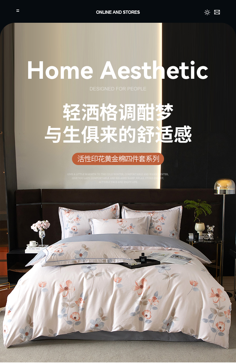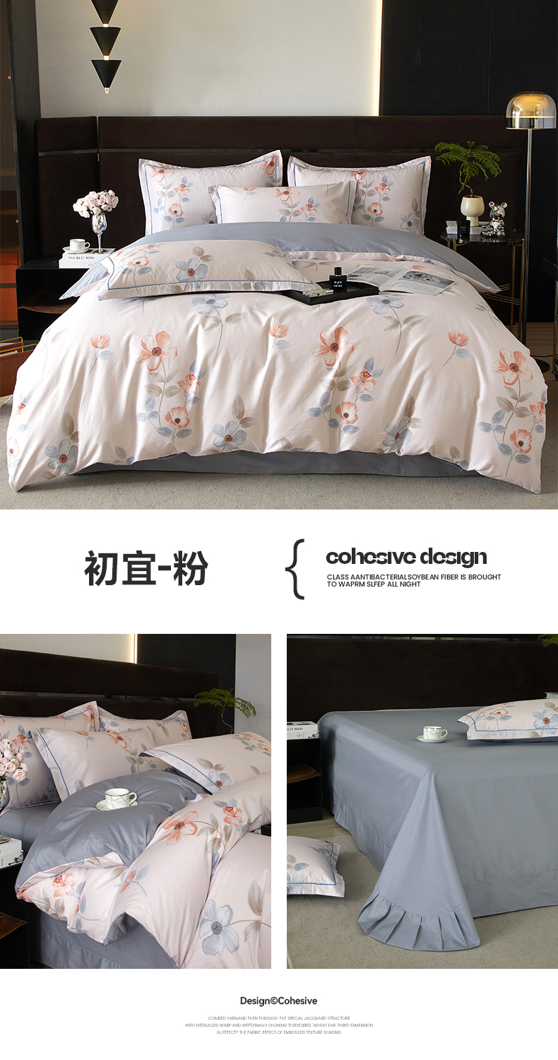 商品名称:沐白 2024新款全棉全棉13376全活性印花黄金棉系列四件套 初宜-粉