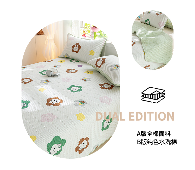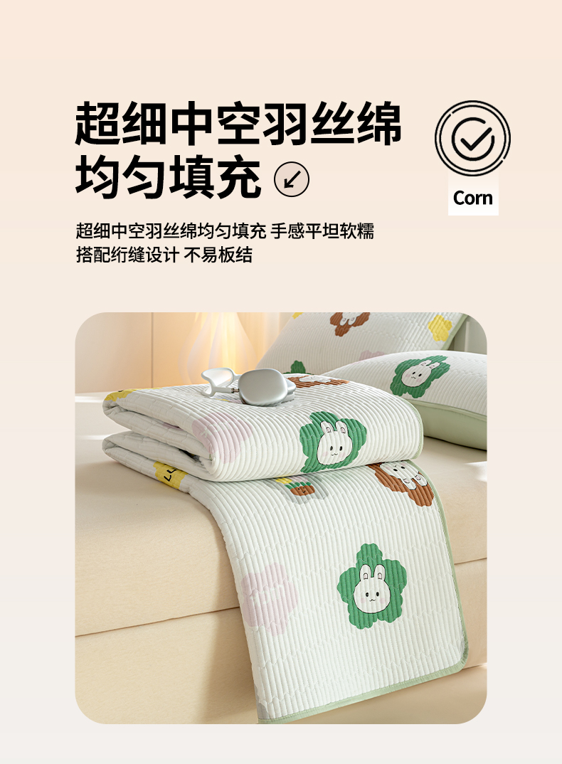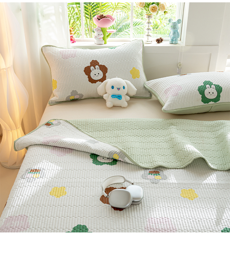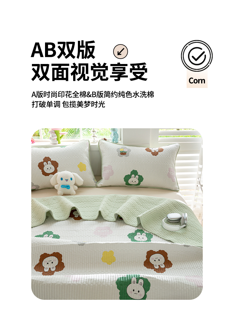 • 91家纺网 家纺一手货源 找家纺 X猫先生床笠 2025新款全棉床盖床单小清新夹棉床盖炕盖套件跑量款(自然光场景) 兔斯基