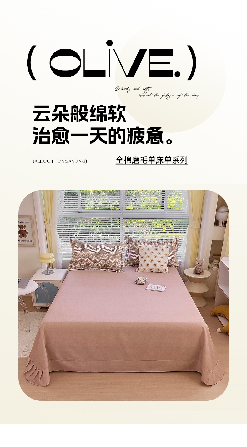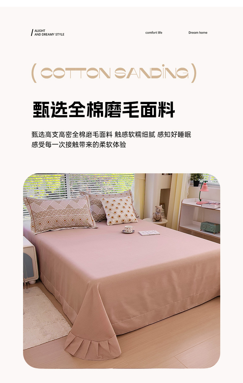 优品阁 2024新款亲肤舒适全棉磨毛单床单 莫妮卡-咖