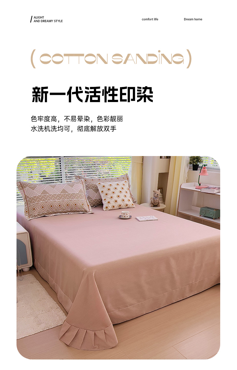 • 91家纺网 家纺一手货源 找家纺 优品阁 2024新款亲肤舒适全棉磨毛单床单 莫妮卡-咖