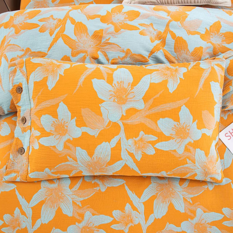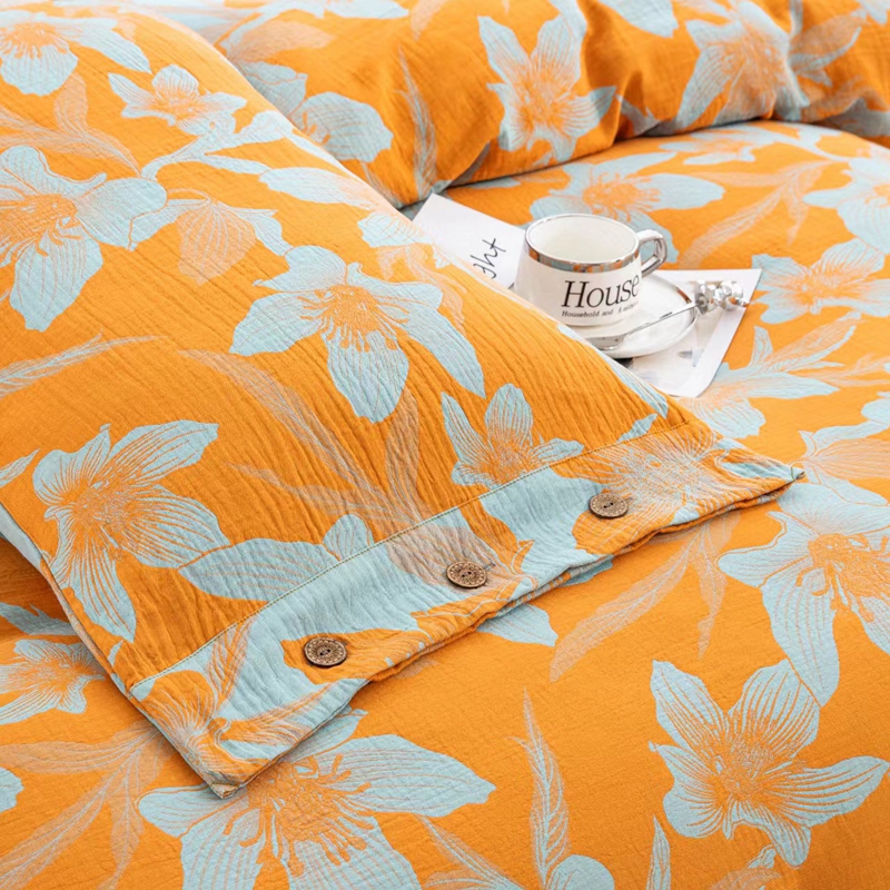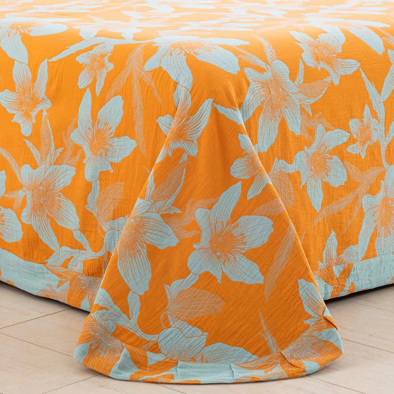 双层纱家居 2024新款大花系列四件套 花漫橘黄