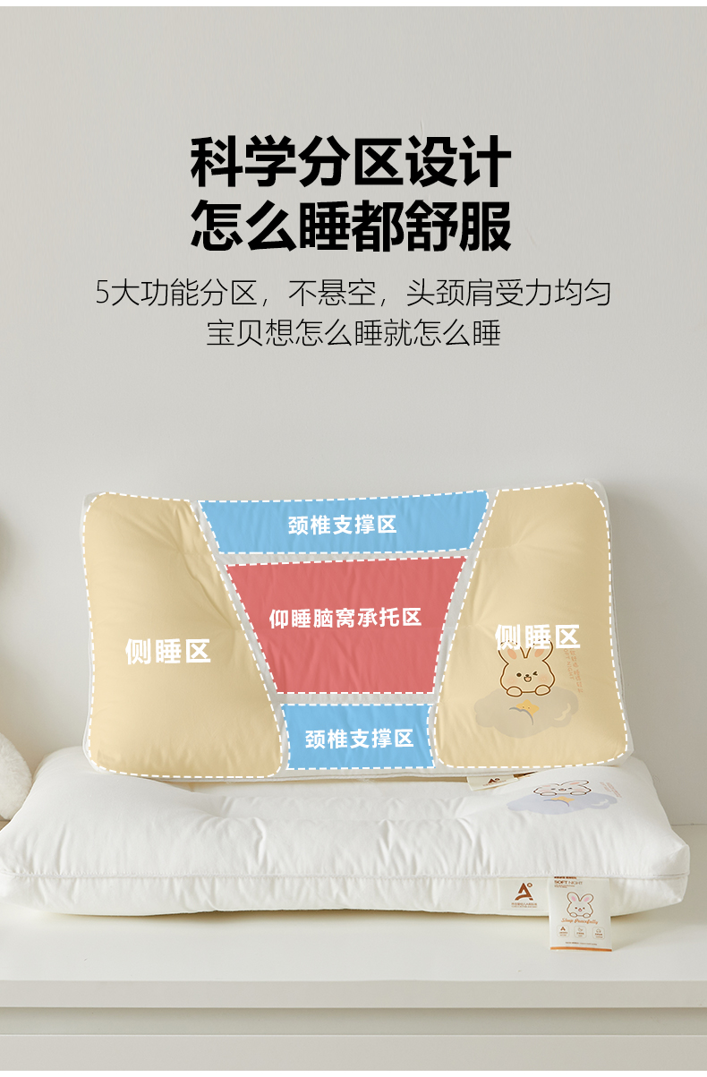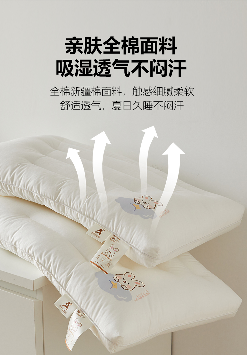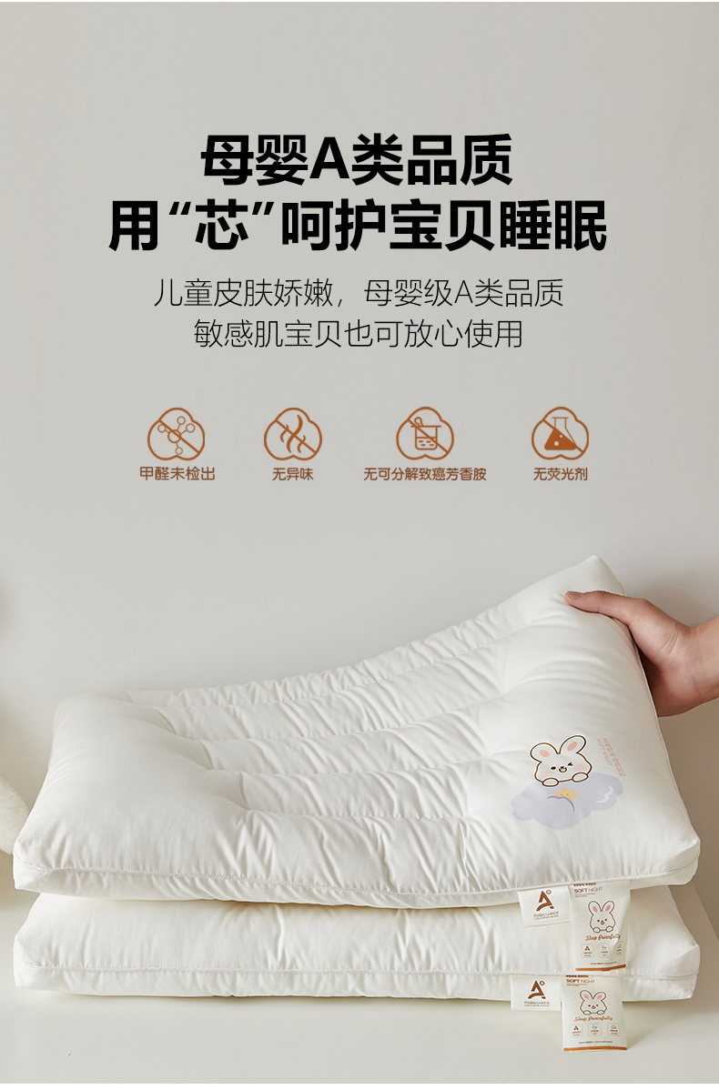商品名称:(总)乐可 2024新款A类全棉晚安兔儿童枕学生枕头枕芯 风格一