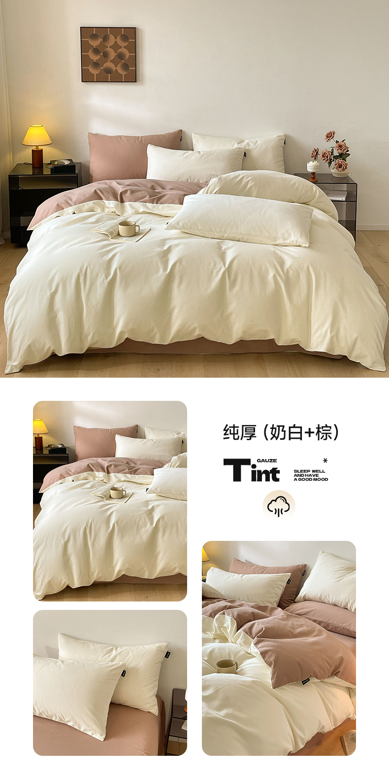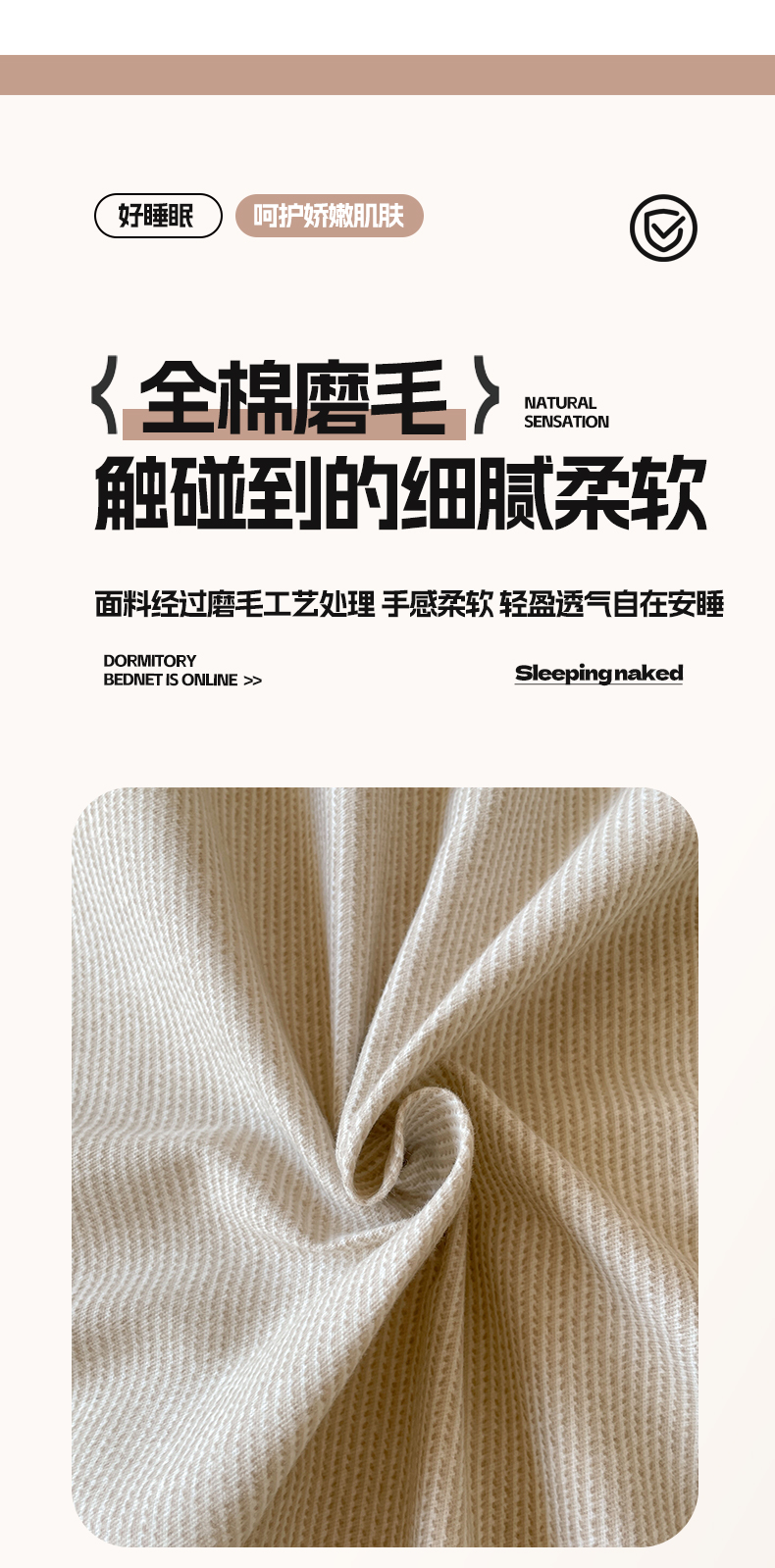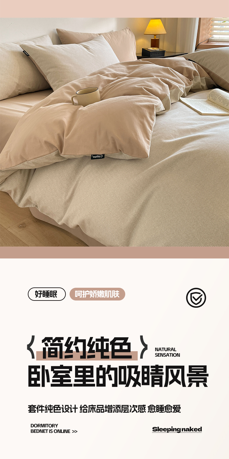 当前位置: 91家纺网 > 商品网购 > 床品套件 > 四件套 > 全棉普通四件套 > 涵宸家纺 2024新款全棉磨毛四件套纯厚系列(简)-四件套 纯厚(奶白+白桃)