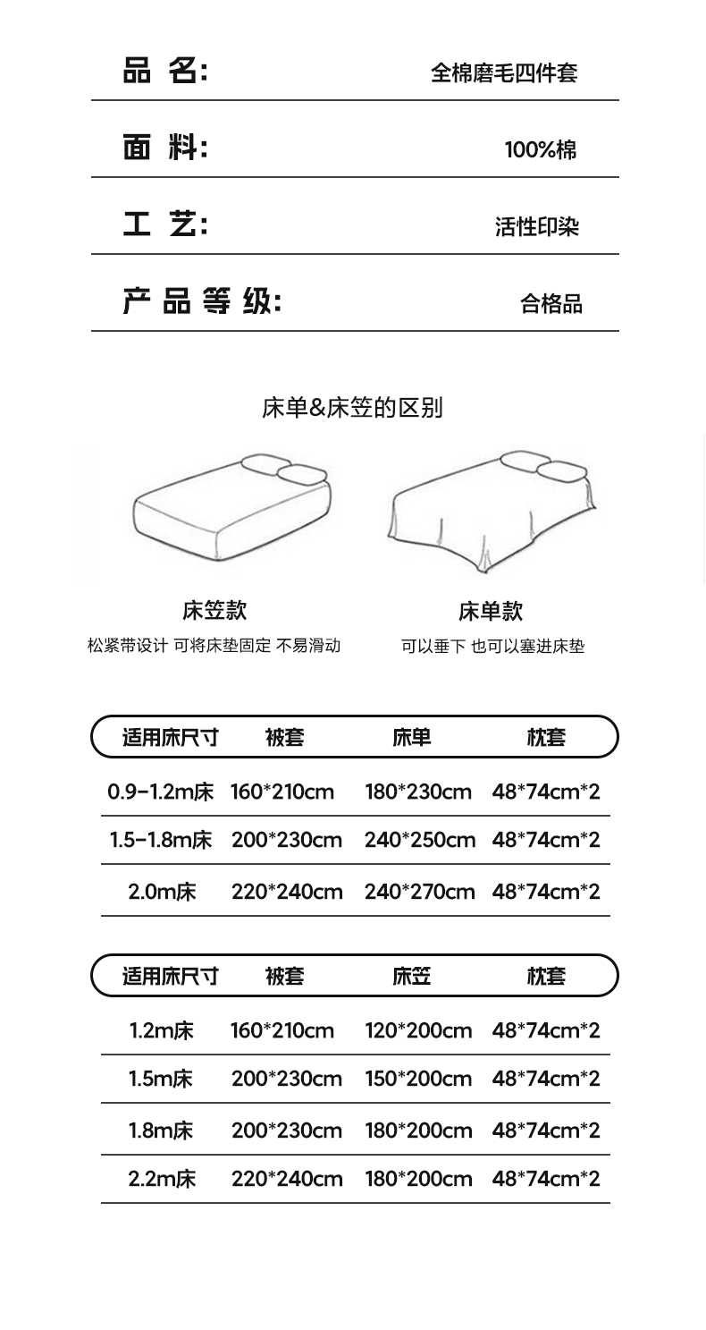 1.8m床笠款四件套 | ¥130.00 |