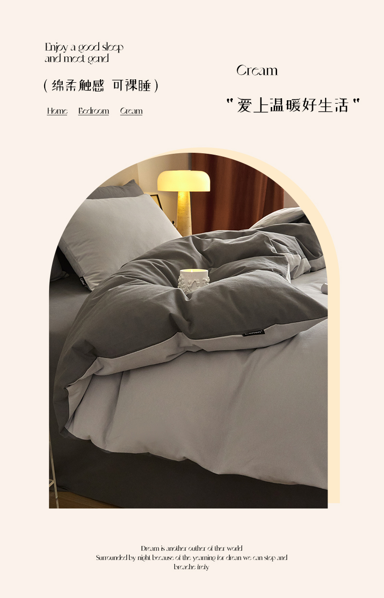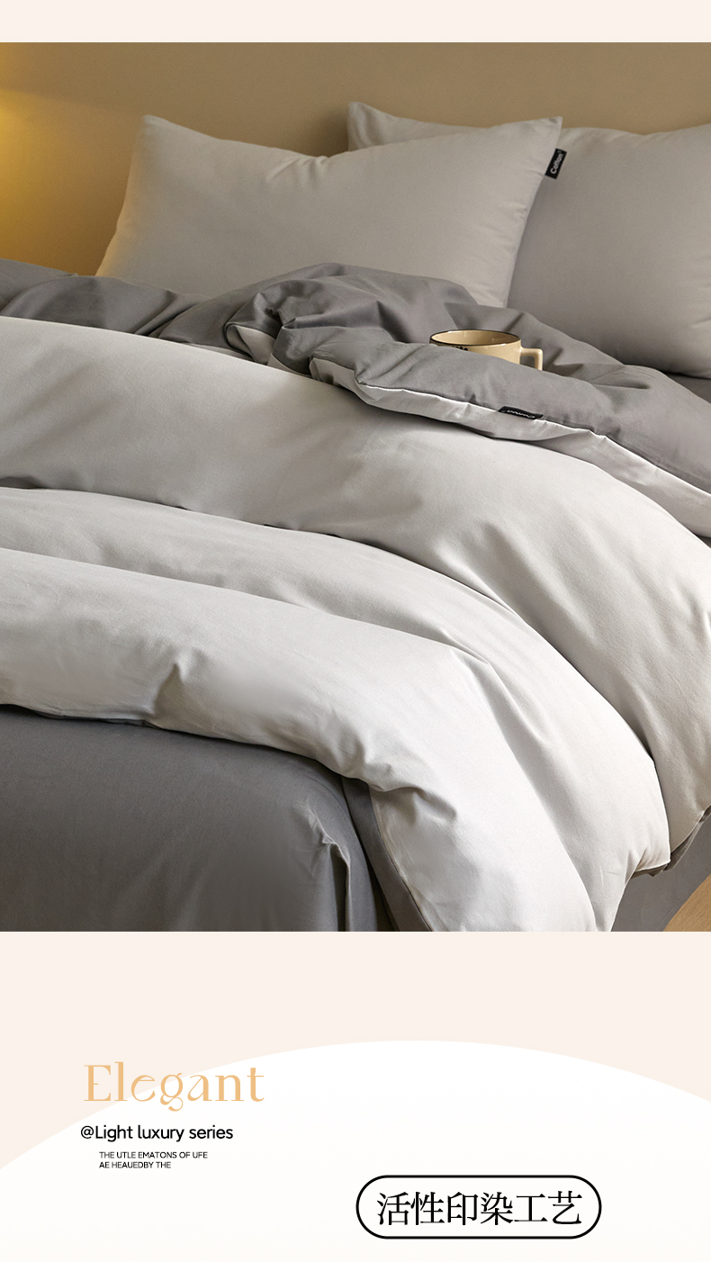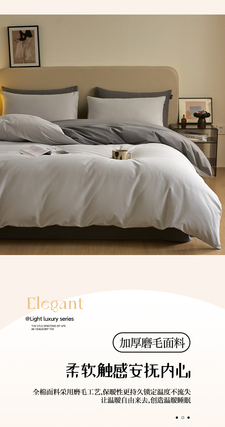 涵宸家纺 2024新款全棉磨毛四件套纯厚系列(轻)-单被套 纯厚(兰灰+灰)