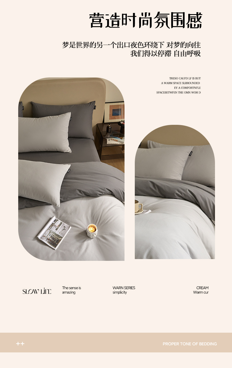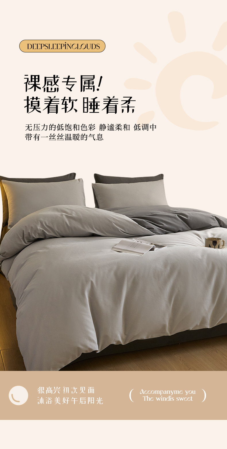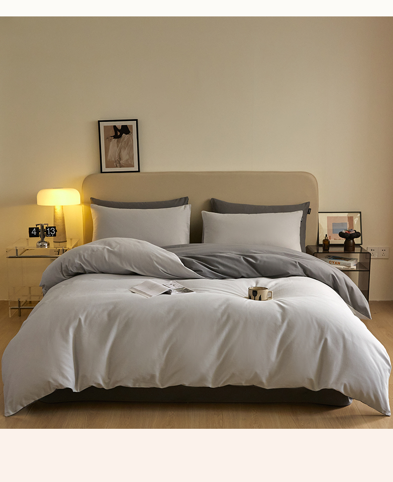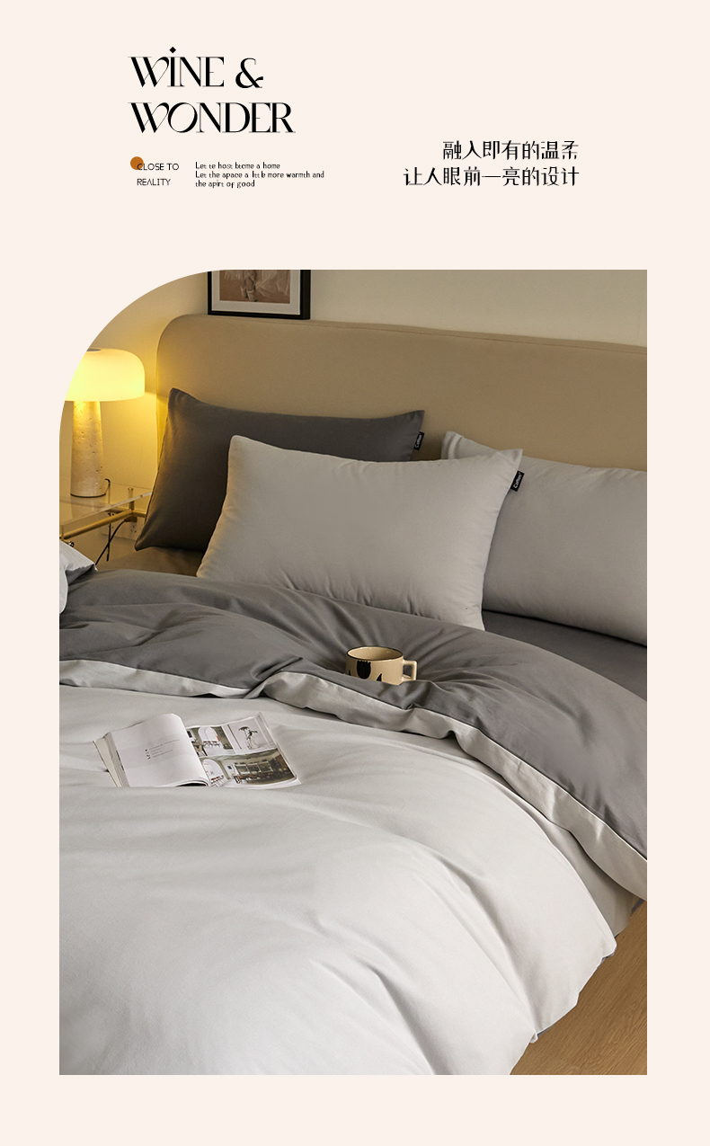 涵宸家纺 2024新款全棉磨毛四件套纯厚系列(轻)-单被套 纯厚(兰灰+灰)