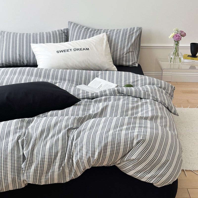当前位置: 91家纺网 > 商品网购 > 床品套件 > 四件套 > 全棉普通四件套 > 艾沁家纺 2024新款40S全棉色织水洗提花条纹四件套 花漾-黑(配1只提花枕+1只字母枕)