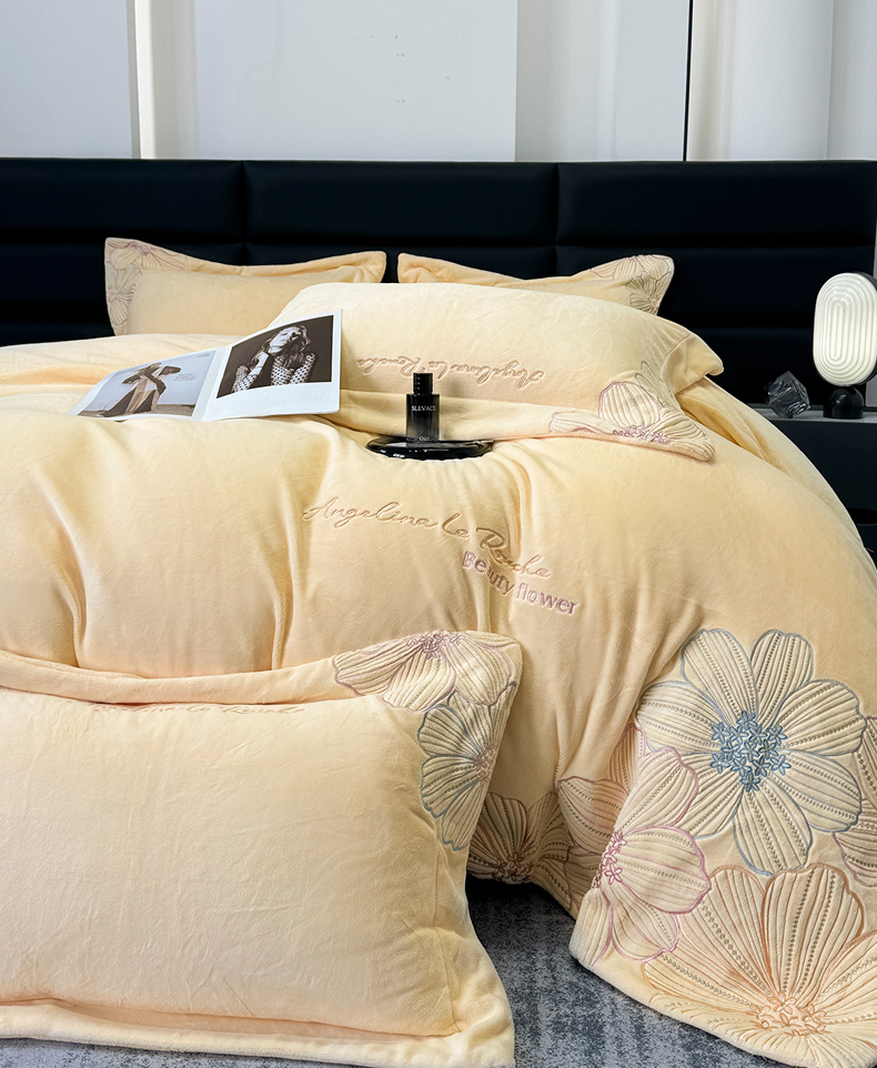 星蕴家纺 2024新款220克全消光牛奶绒四件套--绮丽 奶油黄