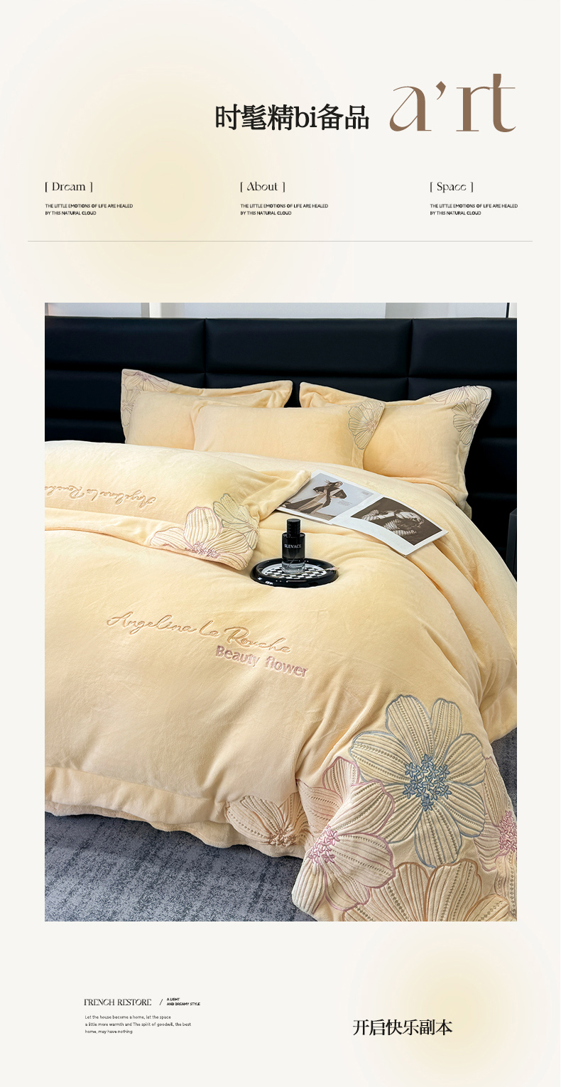 商品名称:星蕴家纺 2024新款220克全消光牛奶绒四件套--绮丽 奶油黄