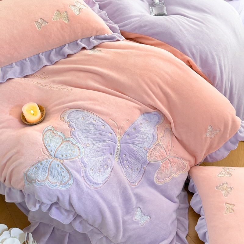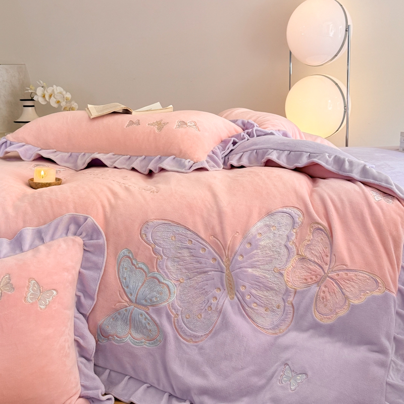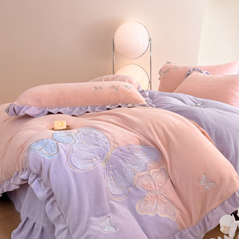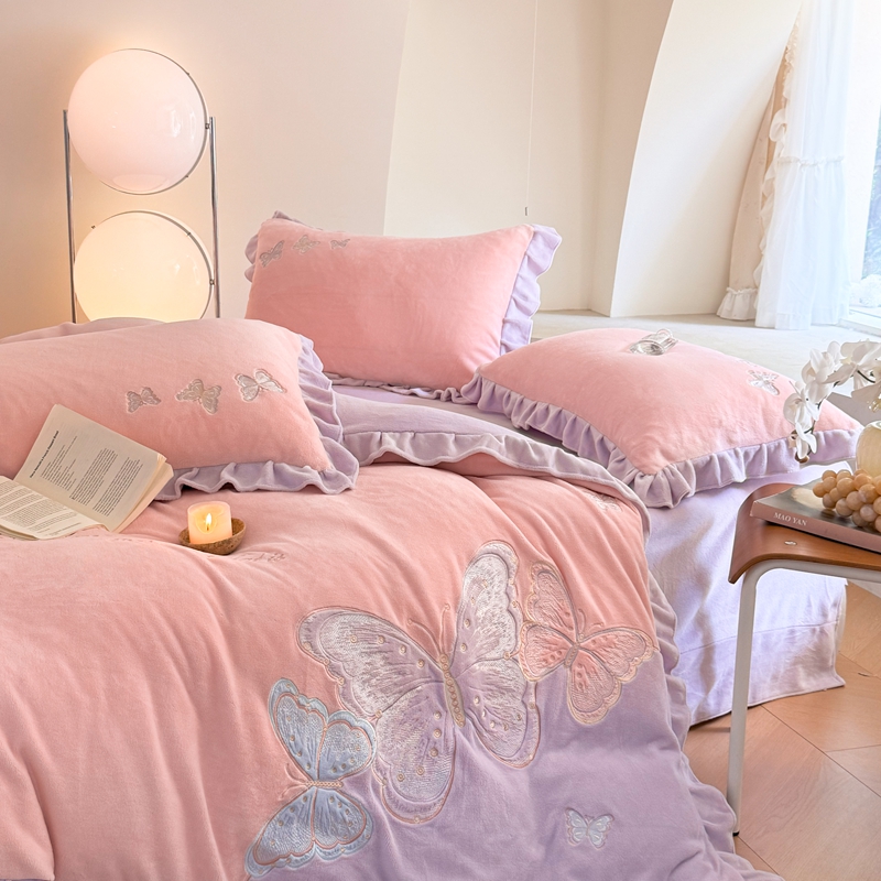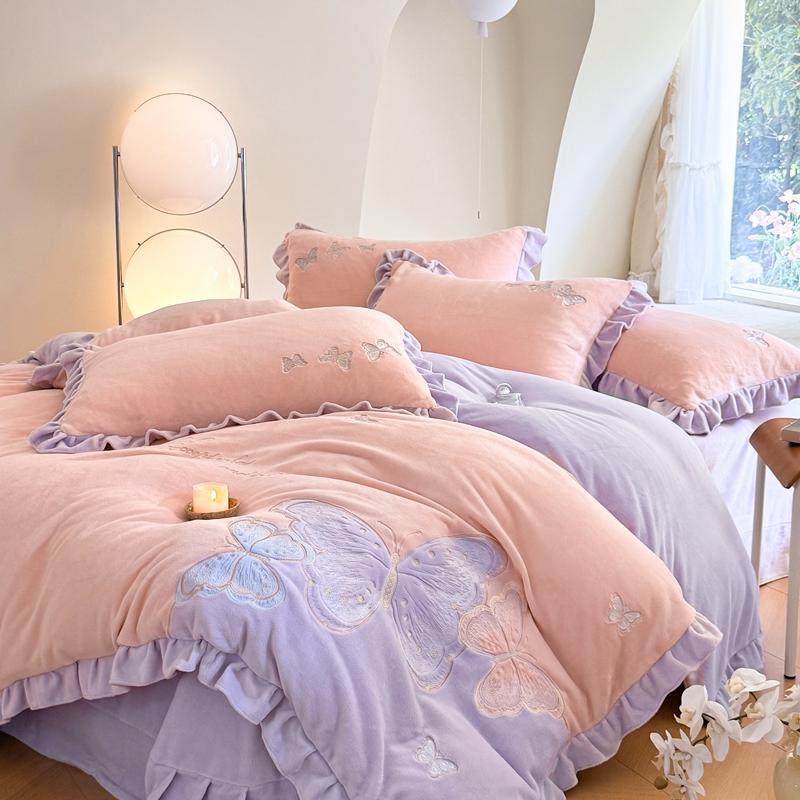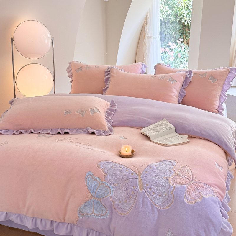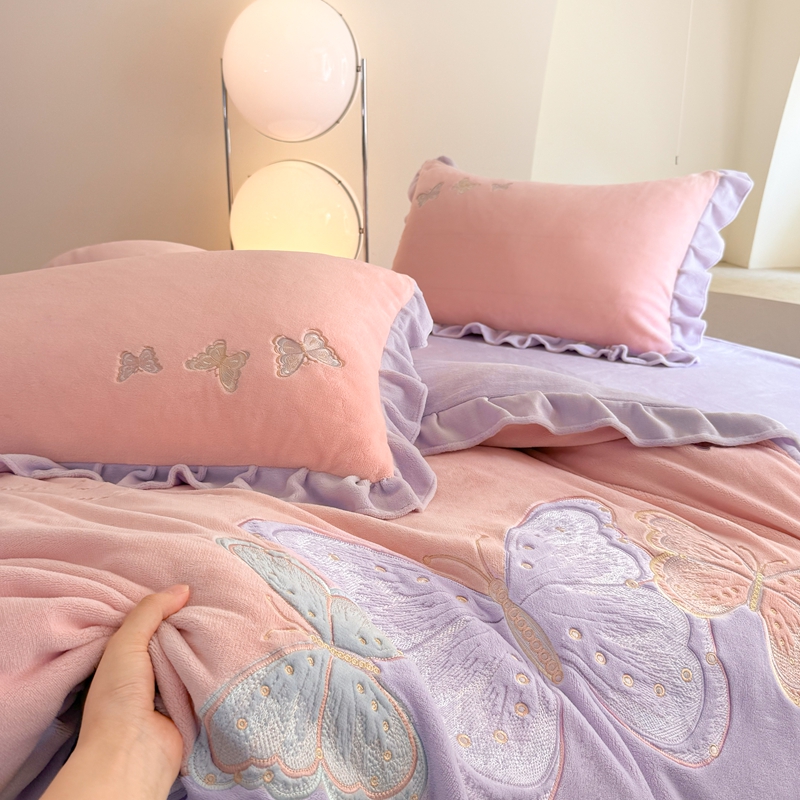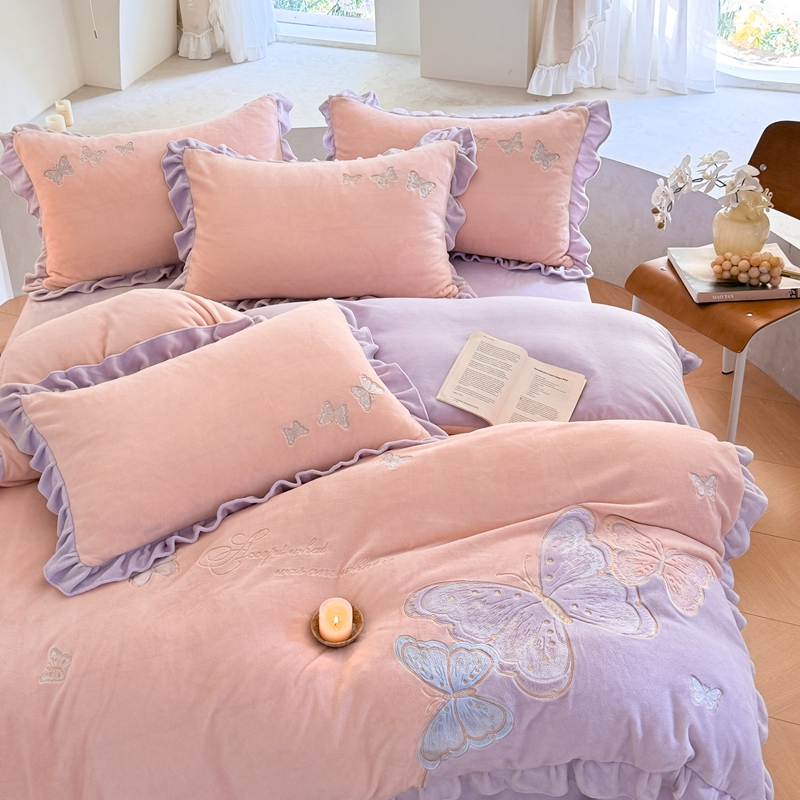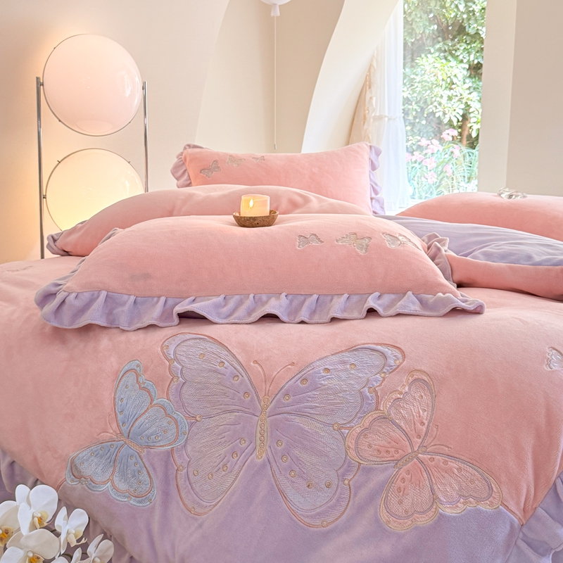 商品名称:可以家居 2024新款全消光牛奶绒云绒法兰绒四件套-薇薇安 贵族粉