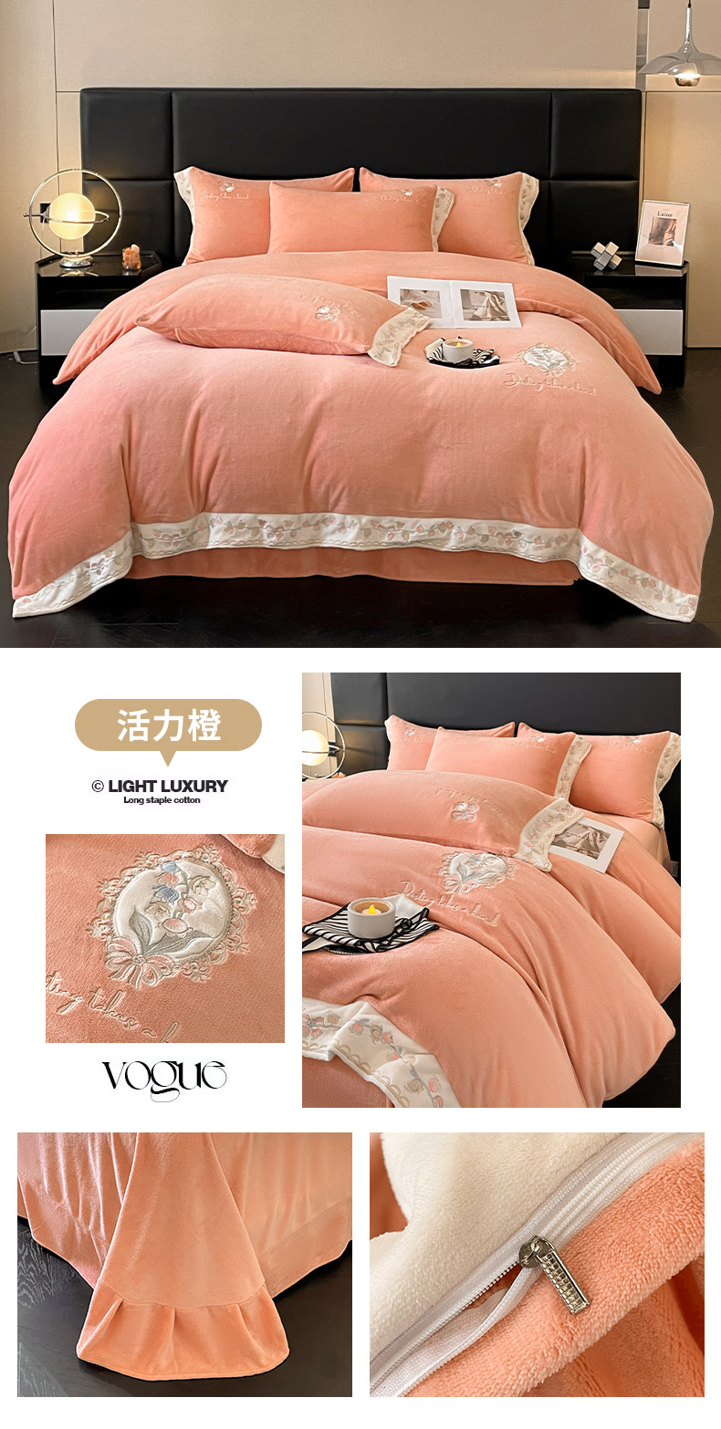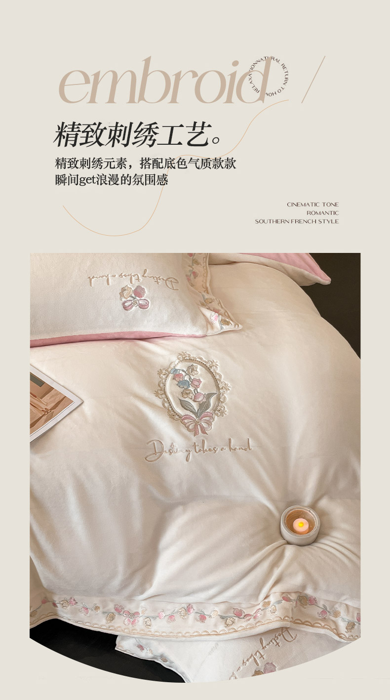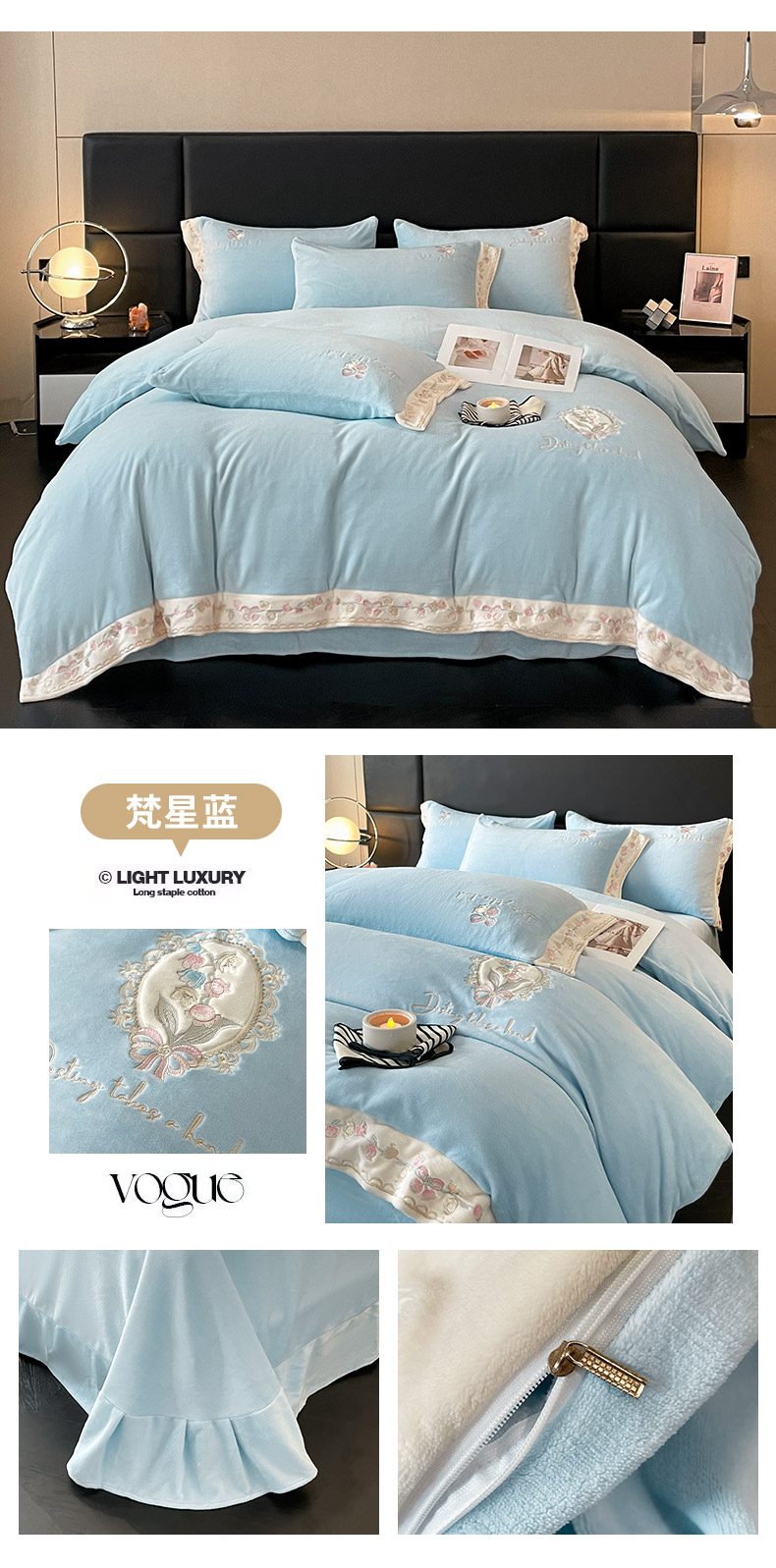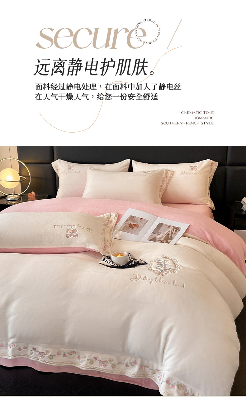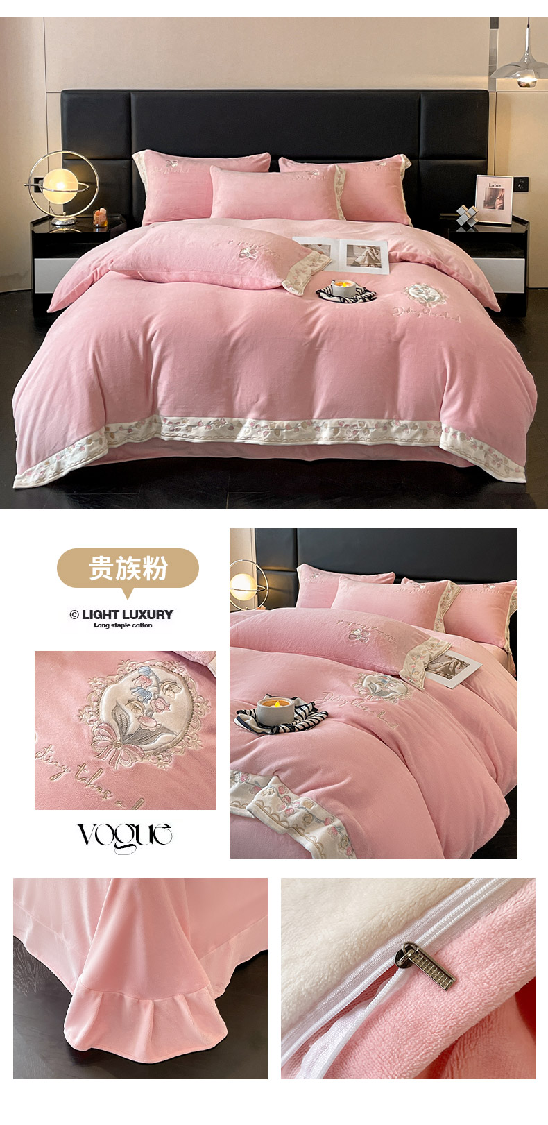 (总)可以家居 2025新款高克重全消光超细旦奶芙云绒四件套-玛利亚系列-莱卡芙,贵族粉,清雅蓝,伯爵绿,优雅紫,粉豆沙