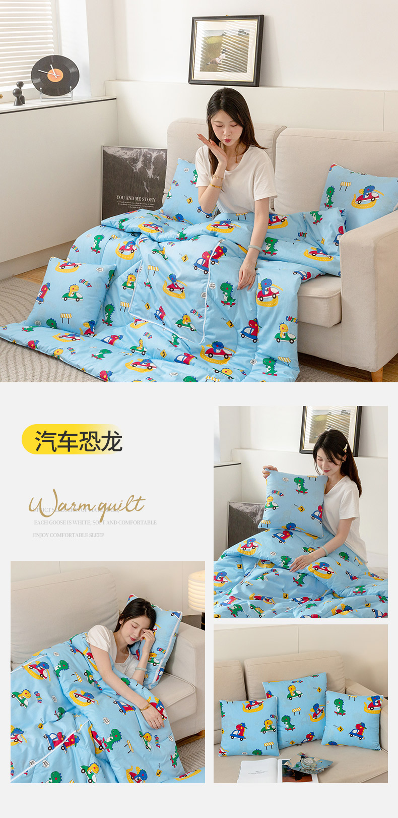 商品名称:雷人家纺 2024新款A类全棉喷气13372印花多功能抱枕被 汽车恐龙