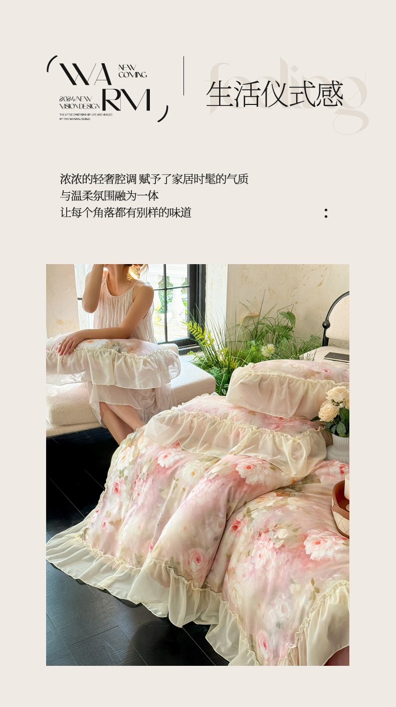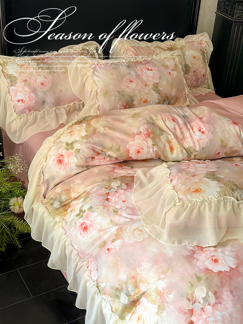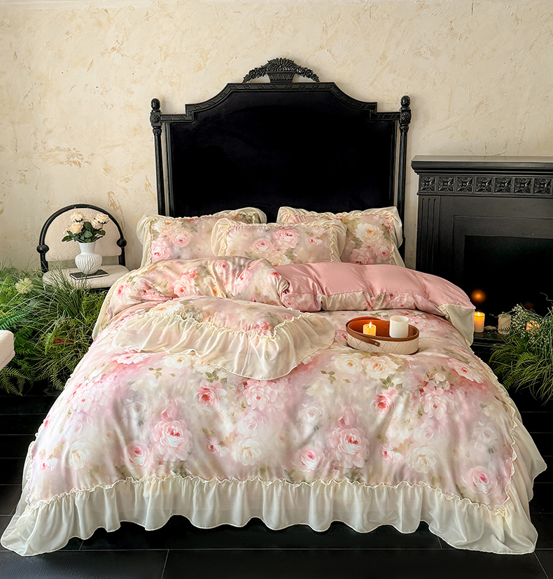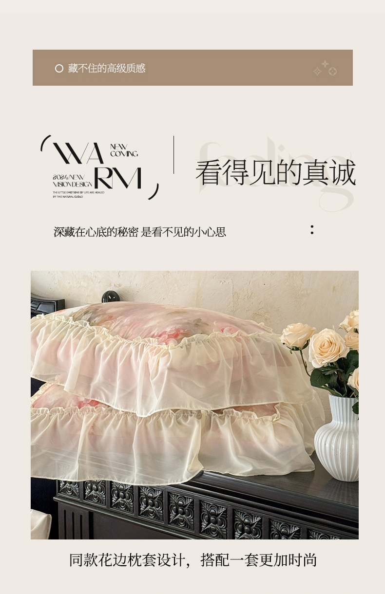 当前位置: 91家纺网 > 商品网购 > 床品套件 > 四件套 > 其它四件套 > (总)你好美丽 2025新款高克重数码印花水洗棉蕾丝四件套-春日