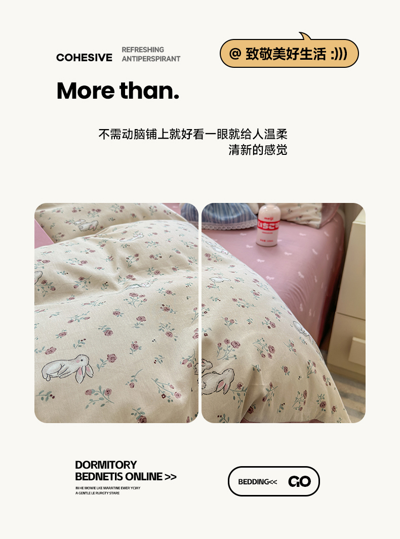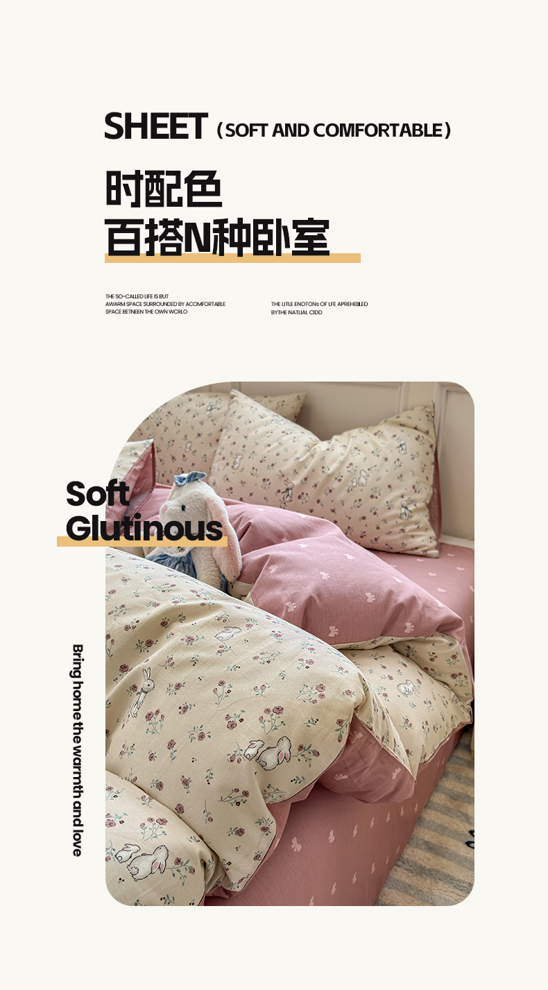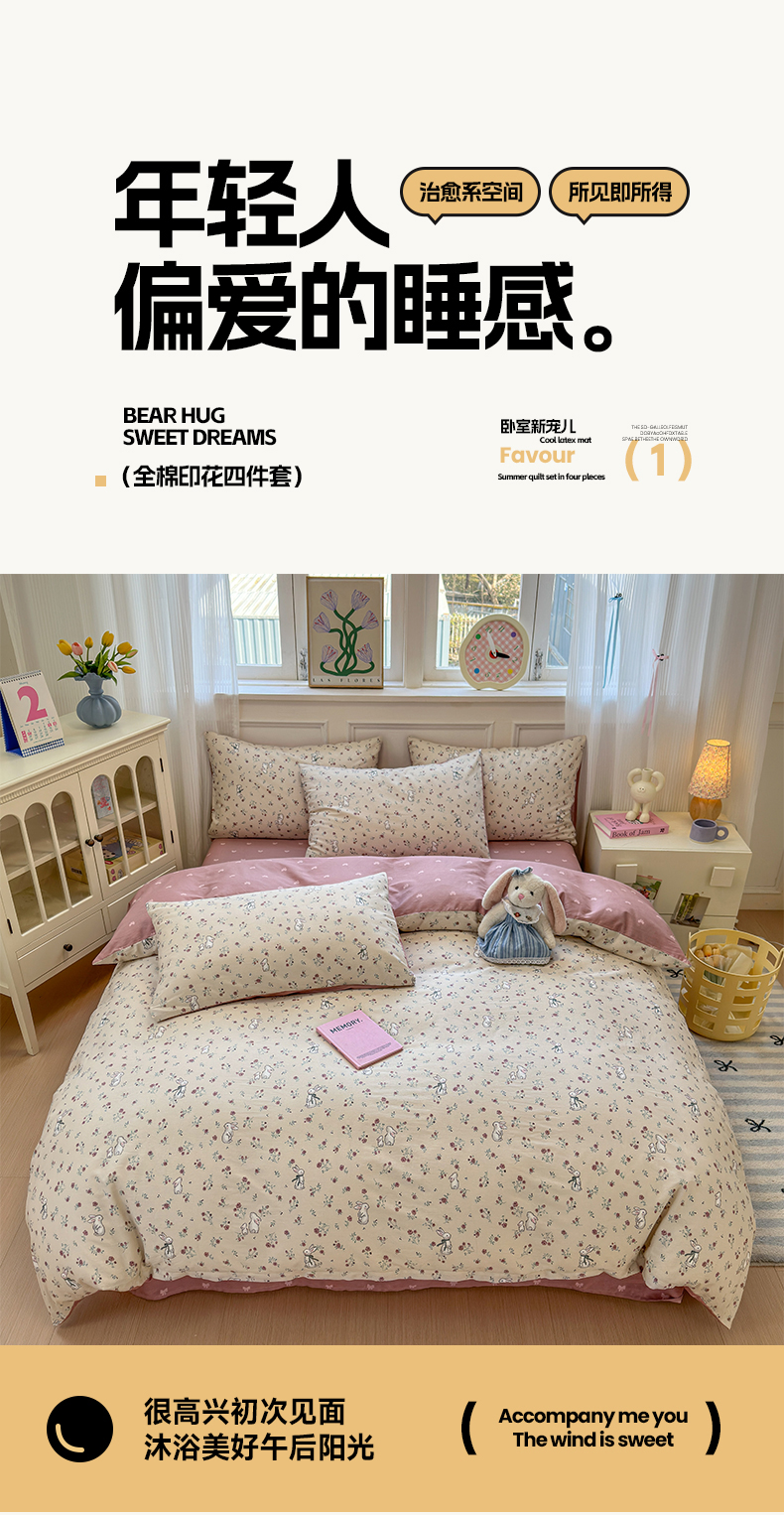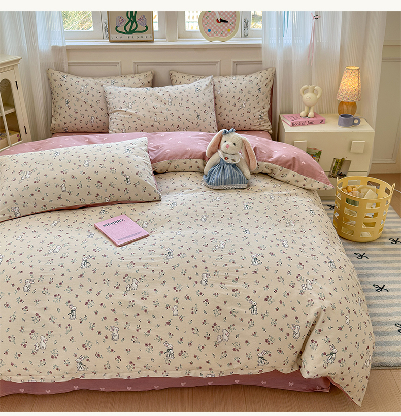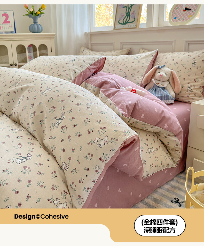 沐棉家居 2025新款全棉印花四件套 幸福小兔
