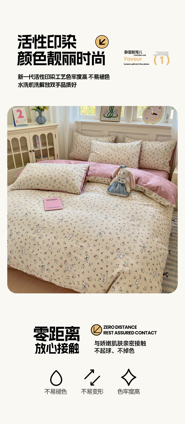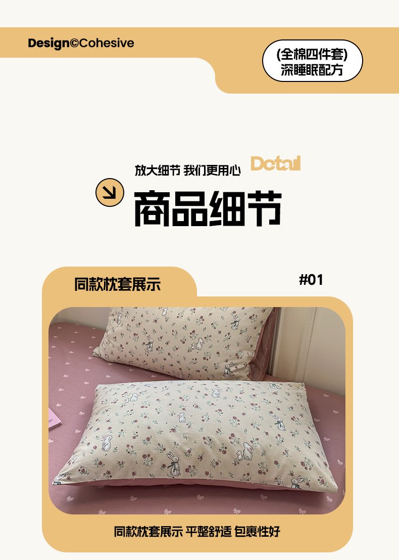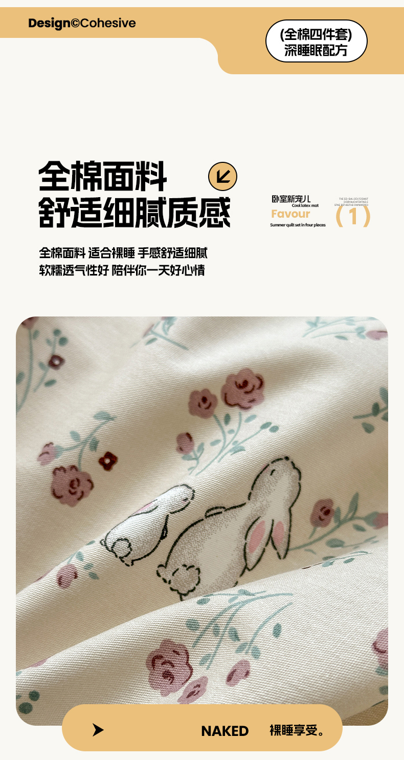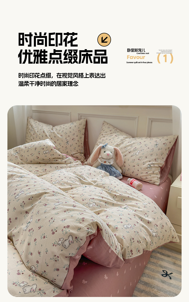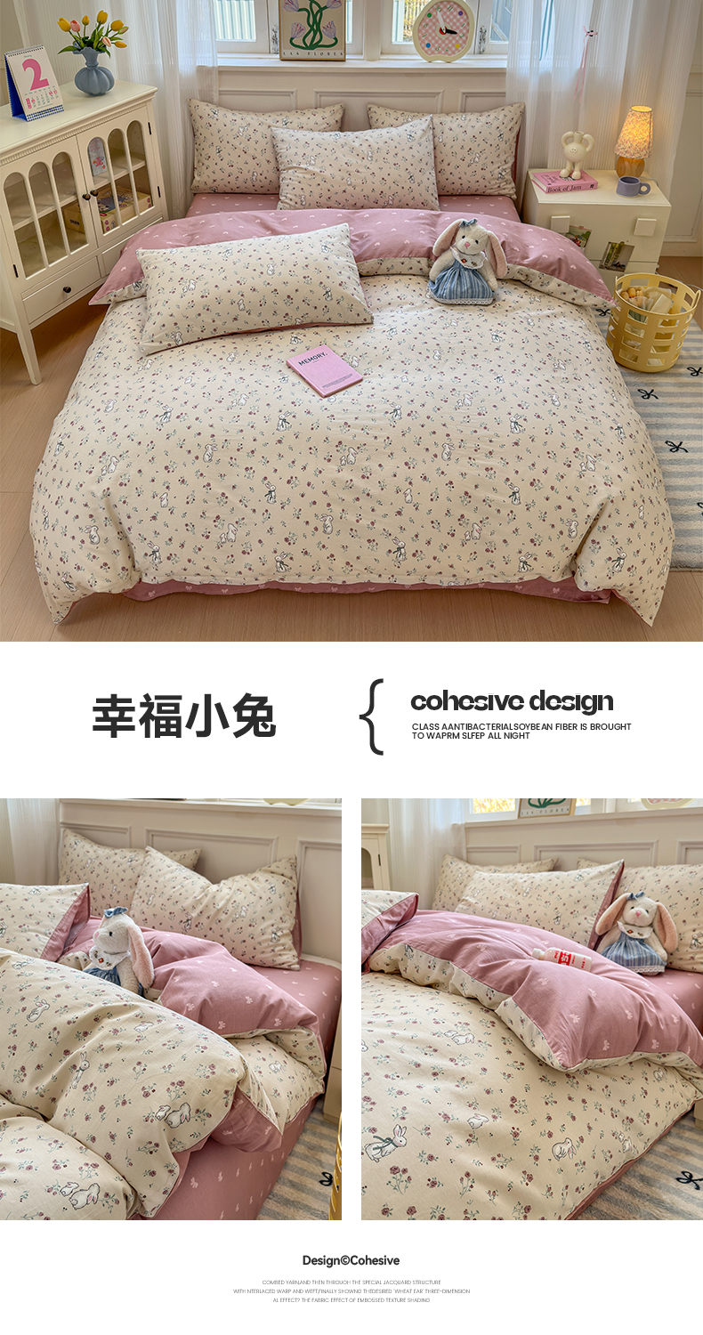 商品名称:沐棉家居 2025新款全棉印花四件套 幸福小兔