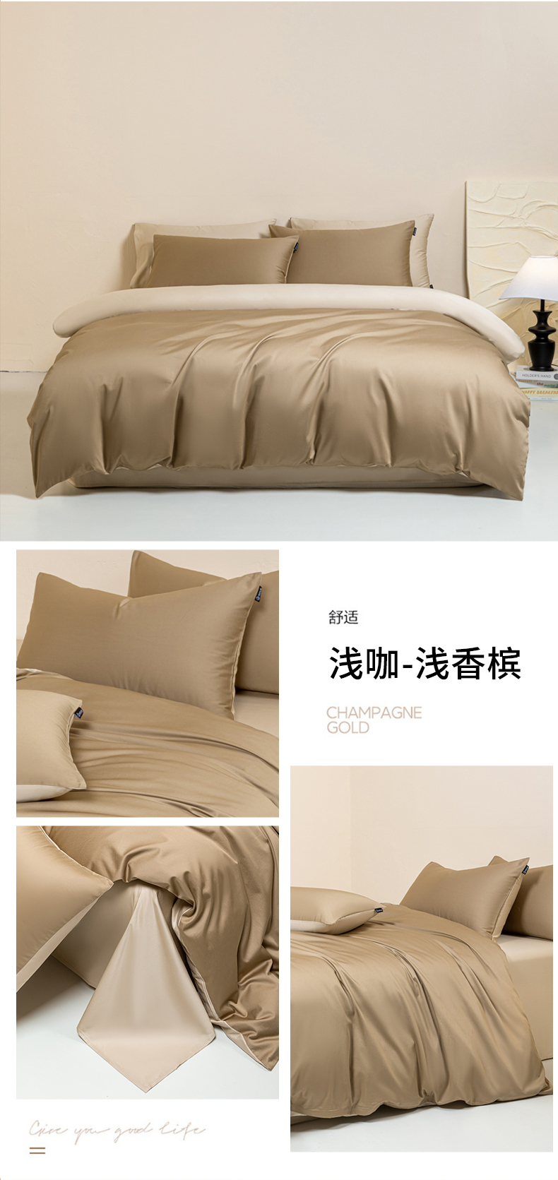 当前位置: 91家纺网 > 商品网购 > 床品套件 > 四件套 > 贡缎全棉四件套 > 舒慕家纺 2025新款100s高支贡缎长绒棉纯色四件套双拼四件套(送包装) 浅咖-浅香槟