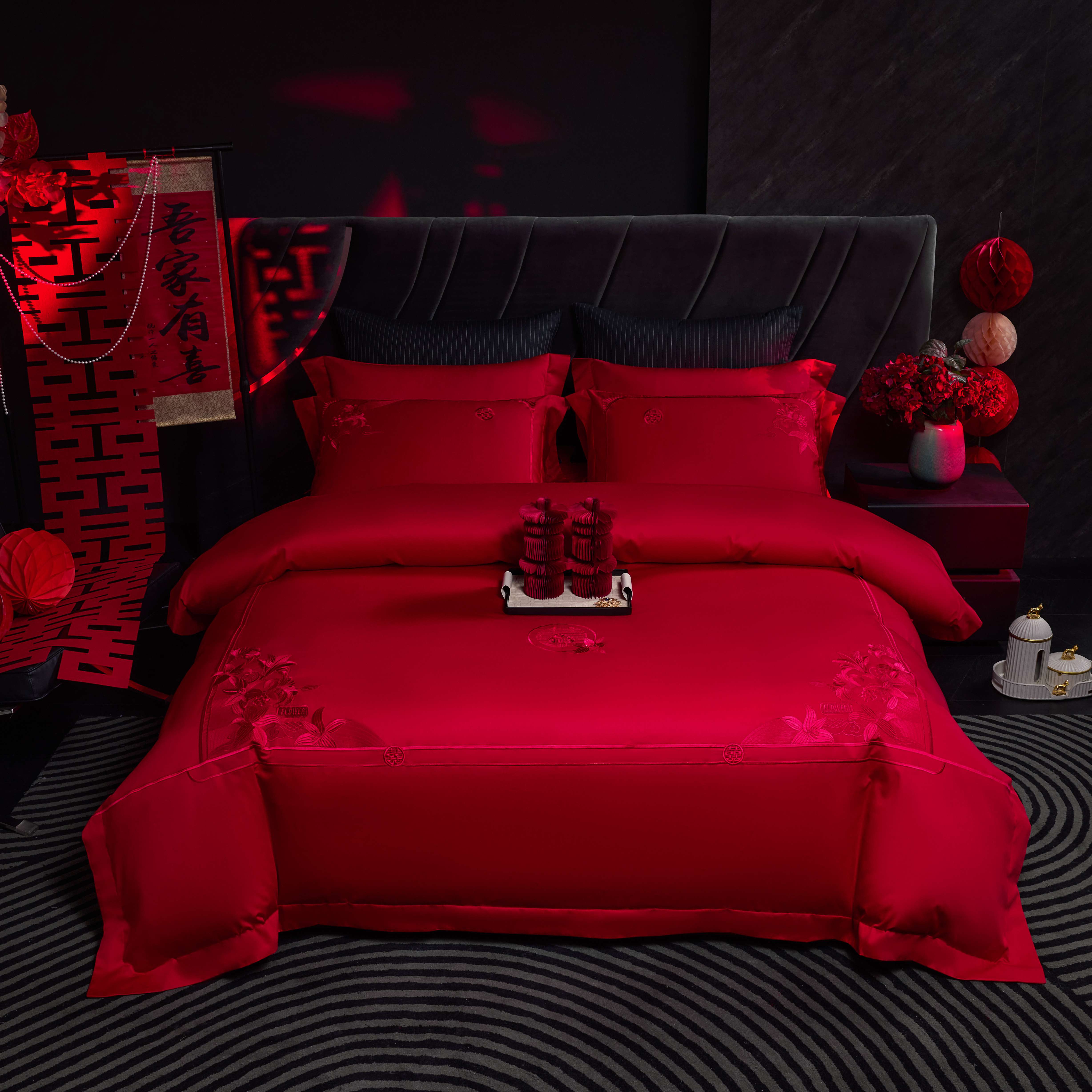 商品名称:2025新款纯棉贡缎刺绣婚庆系列四件套 婚庆-百年好合