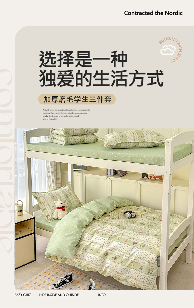 当前位置: 91家纺网 > 商品网购 > 床品套件 > 三件套 > 鑫宇 2025新款磨毛130g加厚学生宿舍三件套床单床笠款学生上下铺六件套 采薇