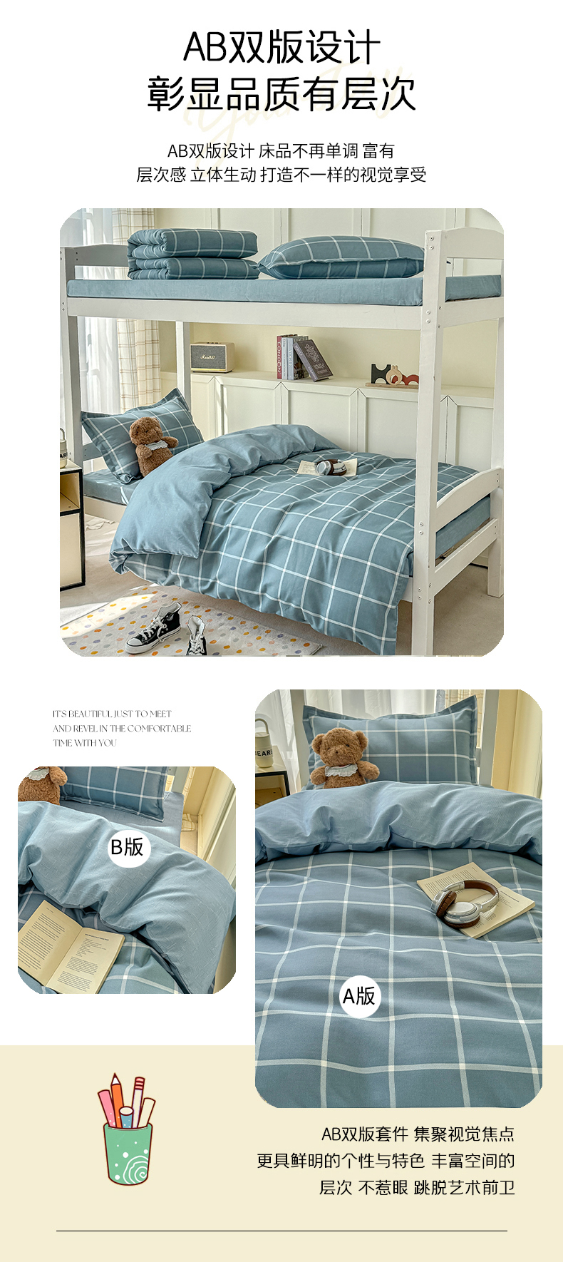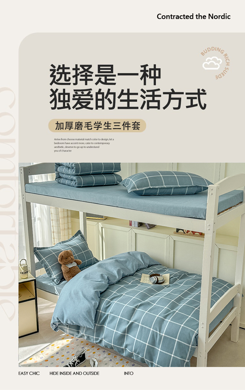 当前位置: 91家纺网 > 商品网购 > 床品套件 > 三件套 > 鑫宇 2025新款磨毛130g加厚学生宿舍三件套床单床笠款学生上下铺六件套 时间格