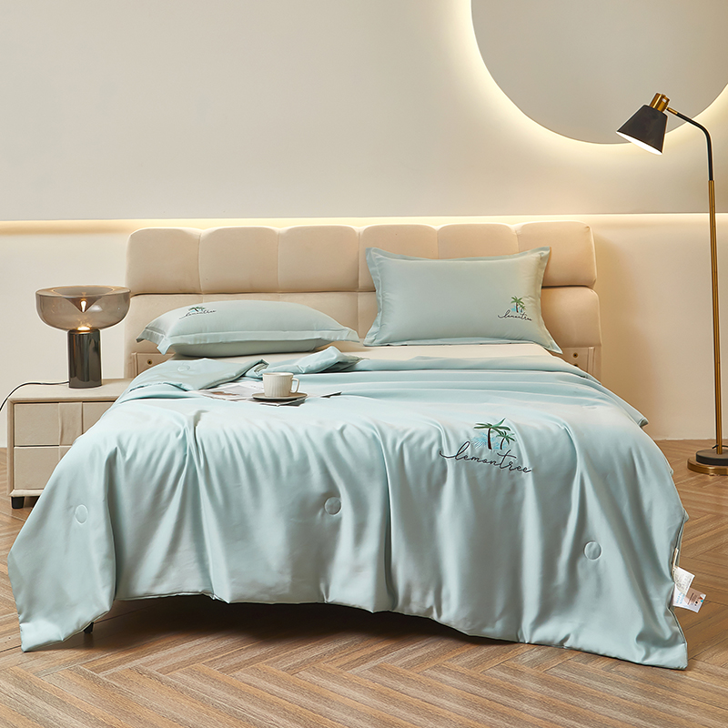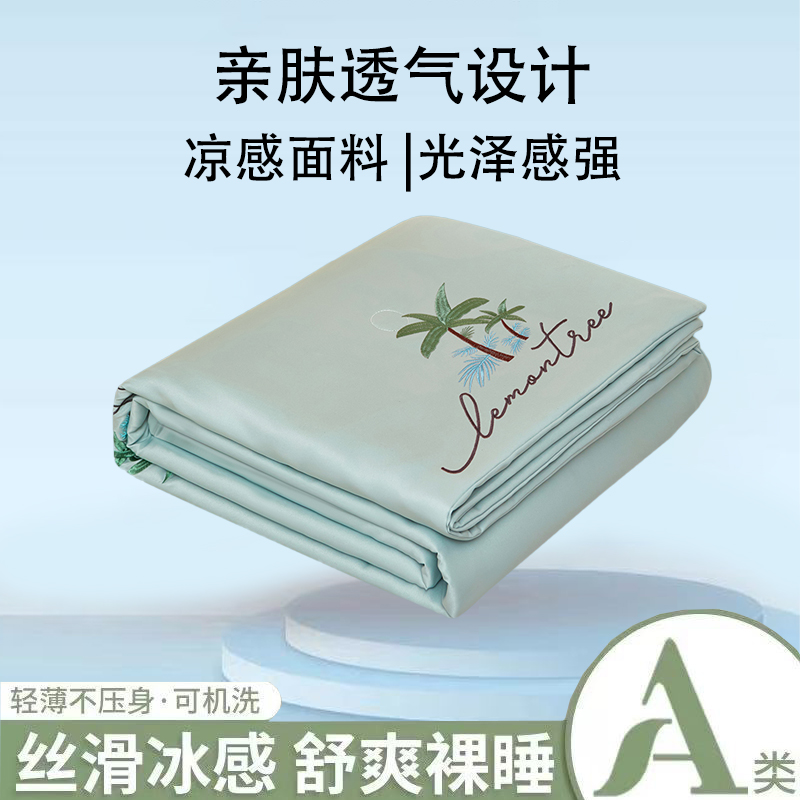 商品名称:圣比熊 2025新款刺绣款凉感丝夏被冰丝夏凉空调被被子被芯 橄榄绿
