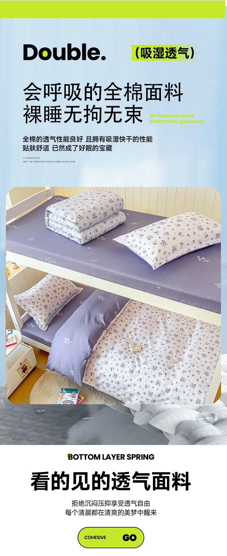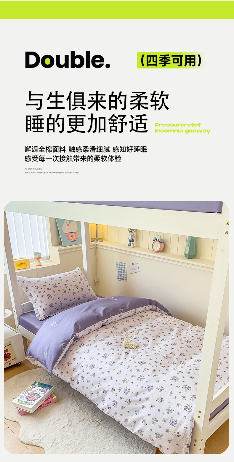 当前位置: 91家纺网 > 商品网购 > 床品套件 > 三件套 > 鑫宇 2025新款全棉纯棉13372宽幅学生上下铺三件套 清风若凡