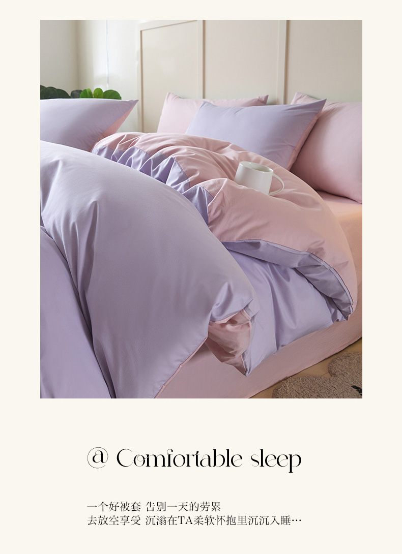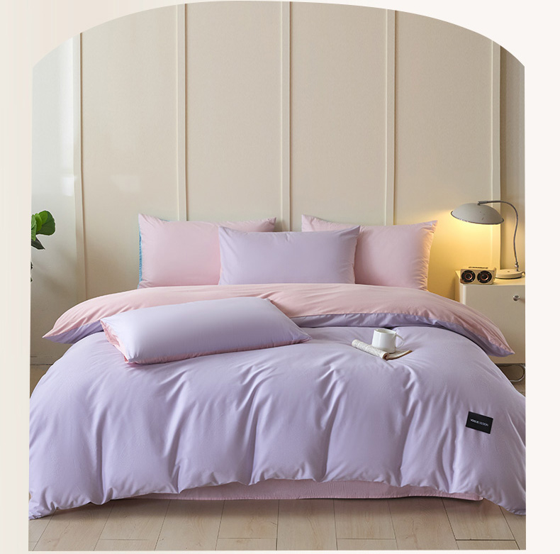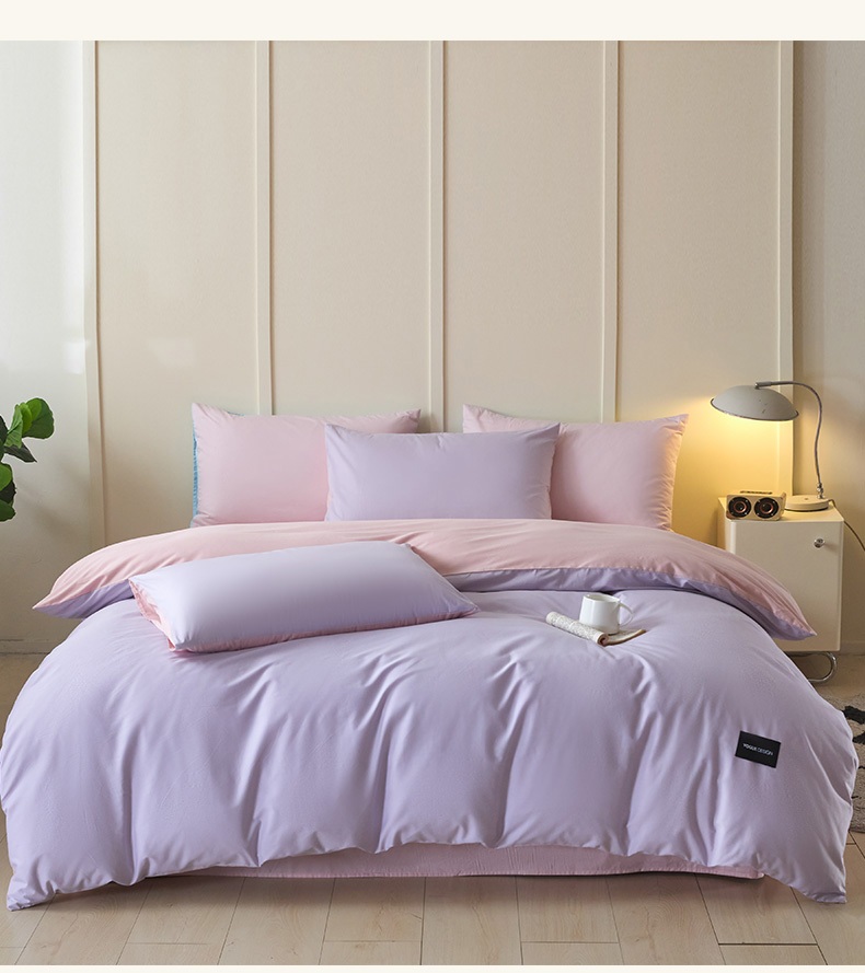 商品名称:乐美家纺 2025新款全棉双拼单被套 丁香紫+芍药粉