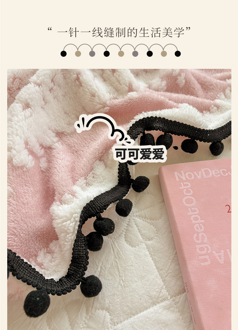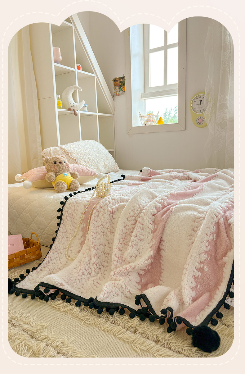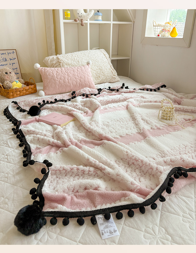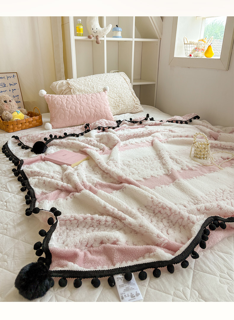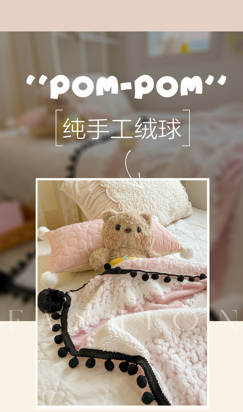 (总)潮邦创意家居 2025新款 奶芙绒流苏球毛毯,薄荷绿,焦糖咖,绵云白,浅蓝灰,深暮灰,甜莓粉