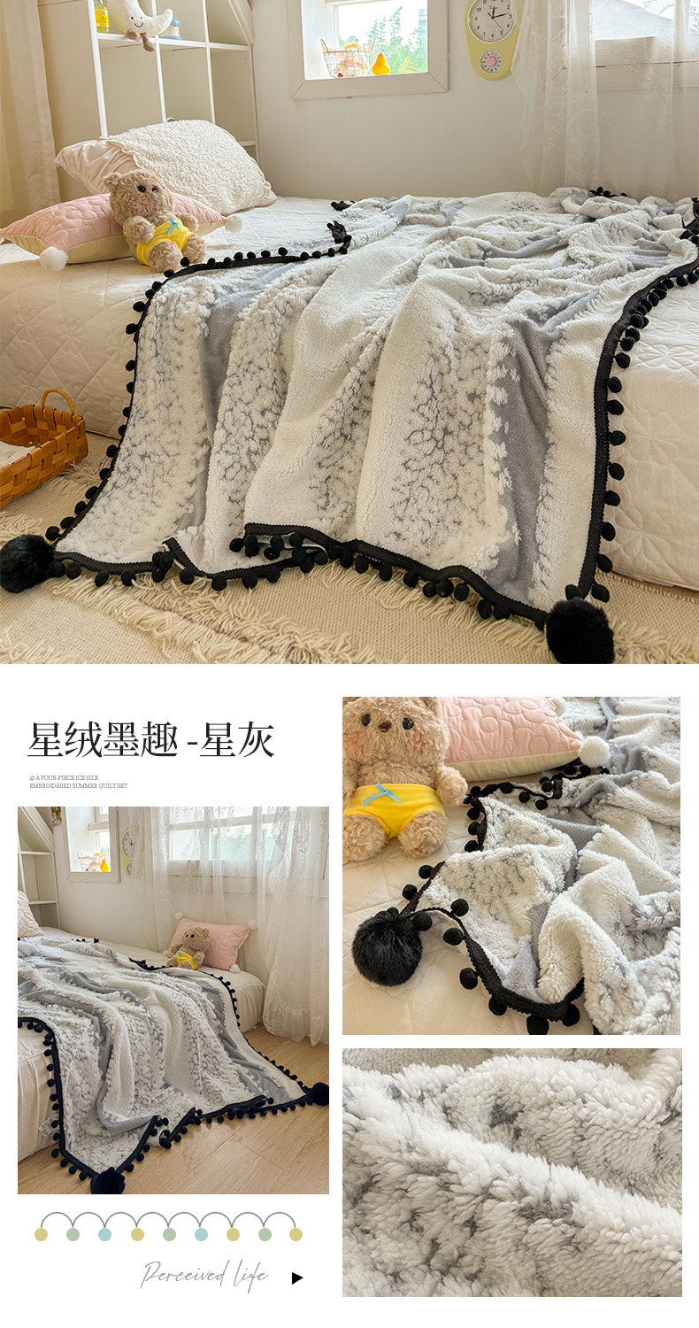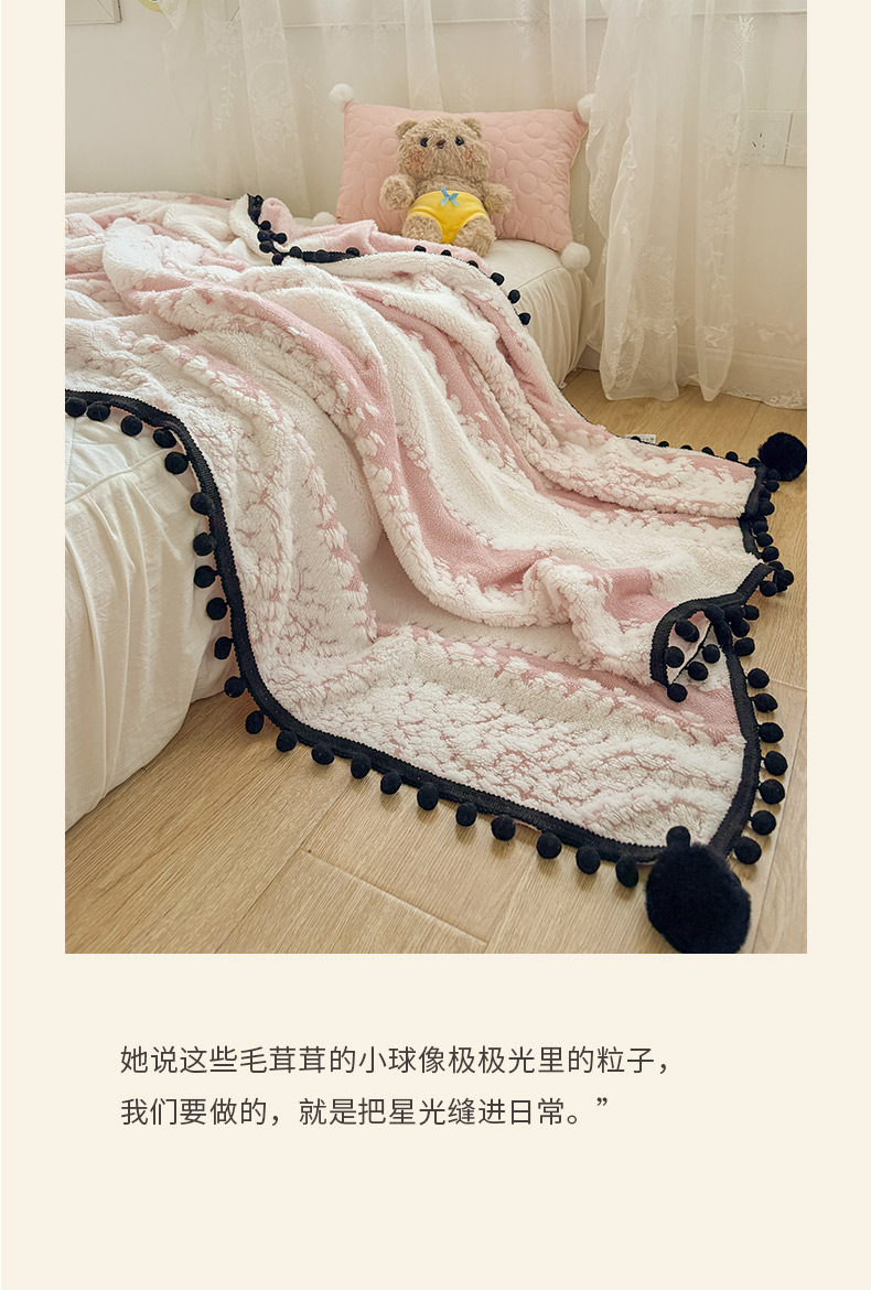 商品名称:(总)潮邦创意家居 2025新款250g阳离子提花小球毯盖毯毯子-星绒墨趣