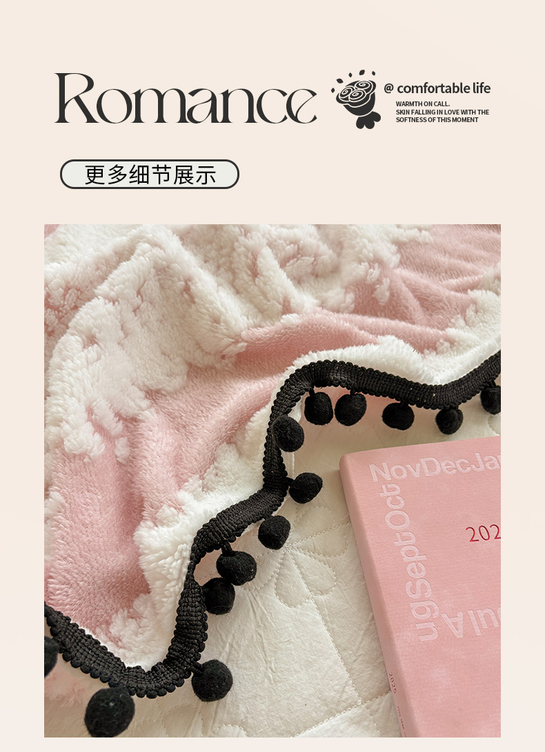 (总)潮邦创意家居 2025新款300G双面阳离子提花工艺球毯-花缀柔绒系列,花缀柔绒-兰,花缀柔绒-粉,花缀柔绒-黑,花缀柔绒-暖橙,花缀柔绒-驼,花缀柔绒-紫