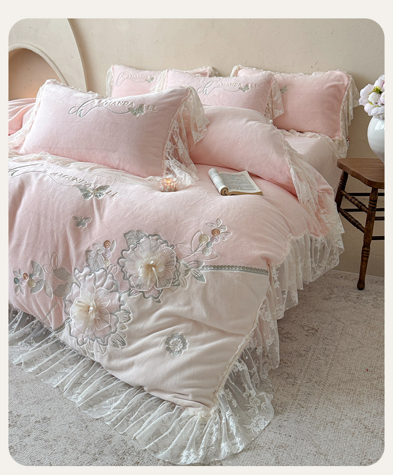 商品名称:可以家居 2025新款高克重全消光超细旦奶芙云绒四件套-玛利亚系列-莱卡芙 贵族粉
