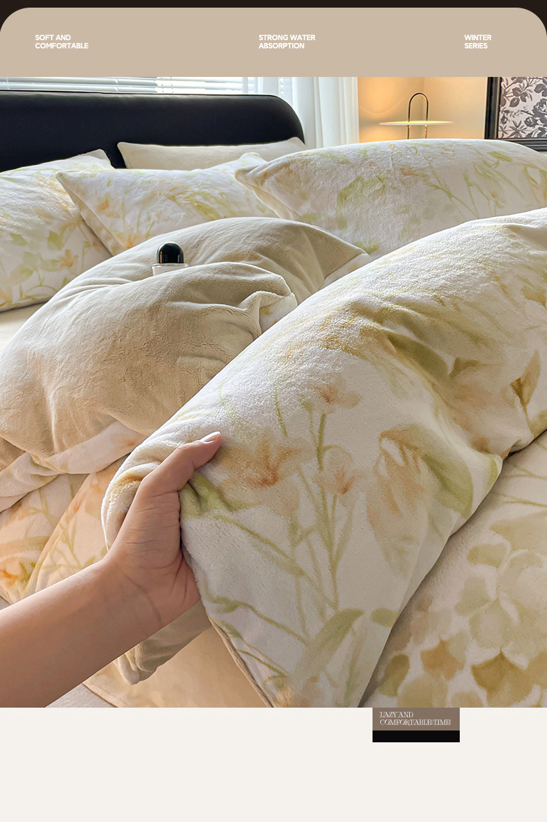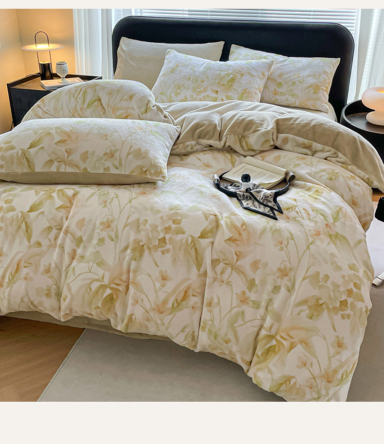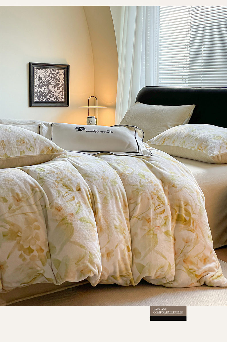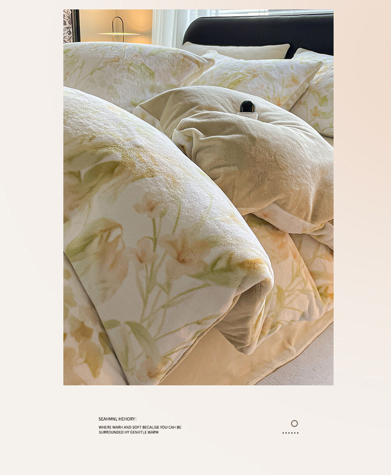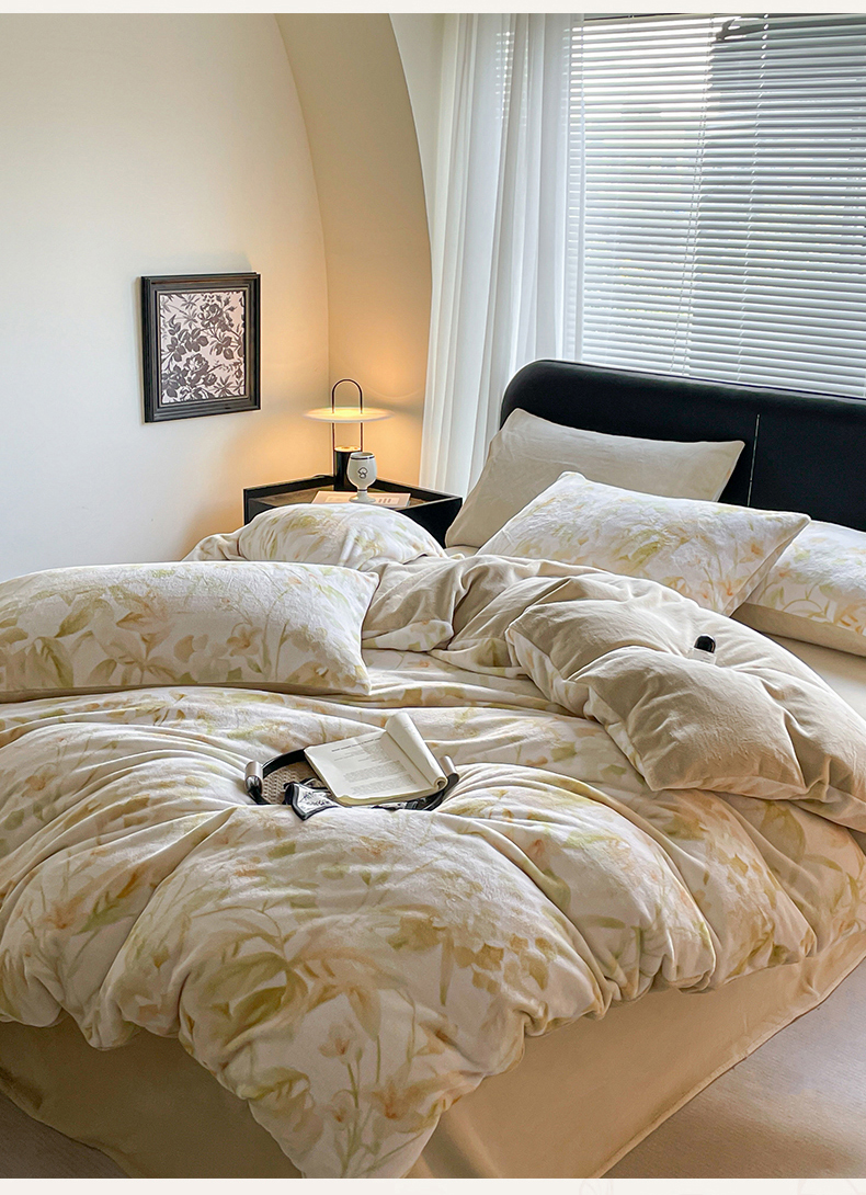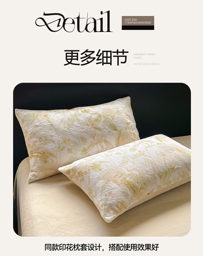 本制 2025秋冬新款牛奶绒印花四件套 秘境-奶茶