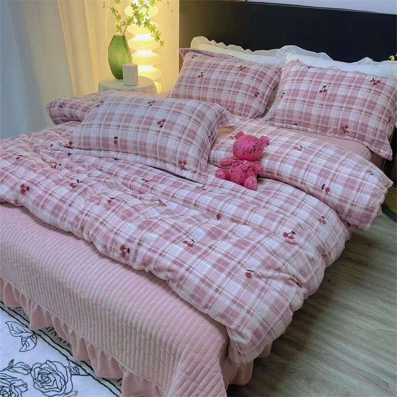 商品名称:富缦庭 2024新款直播爆款小清新印花牛奶绒床盖四件套 乌梅子酱