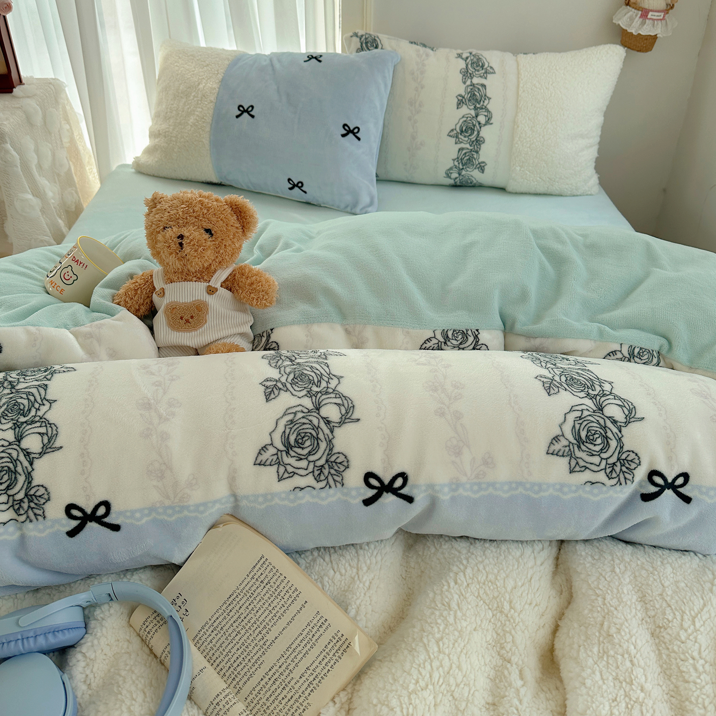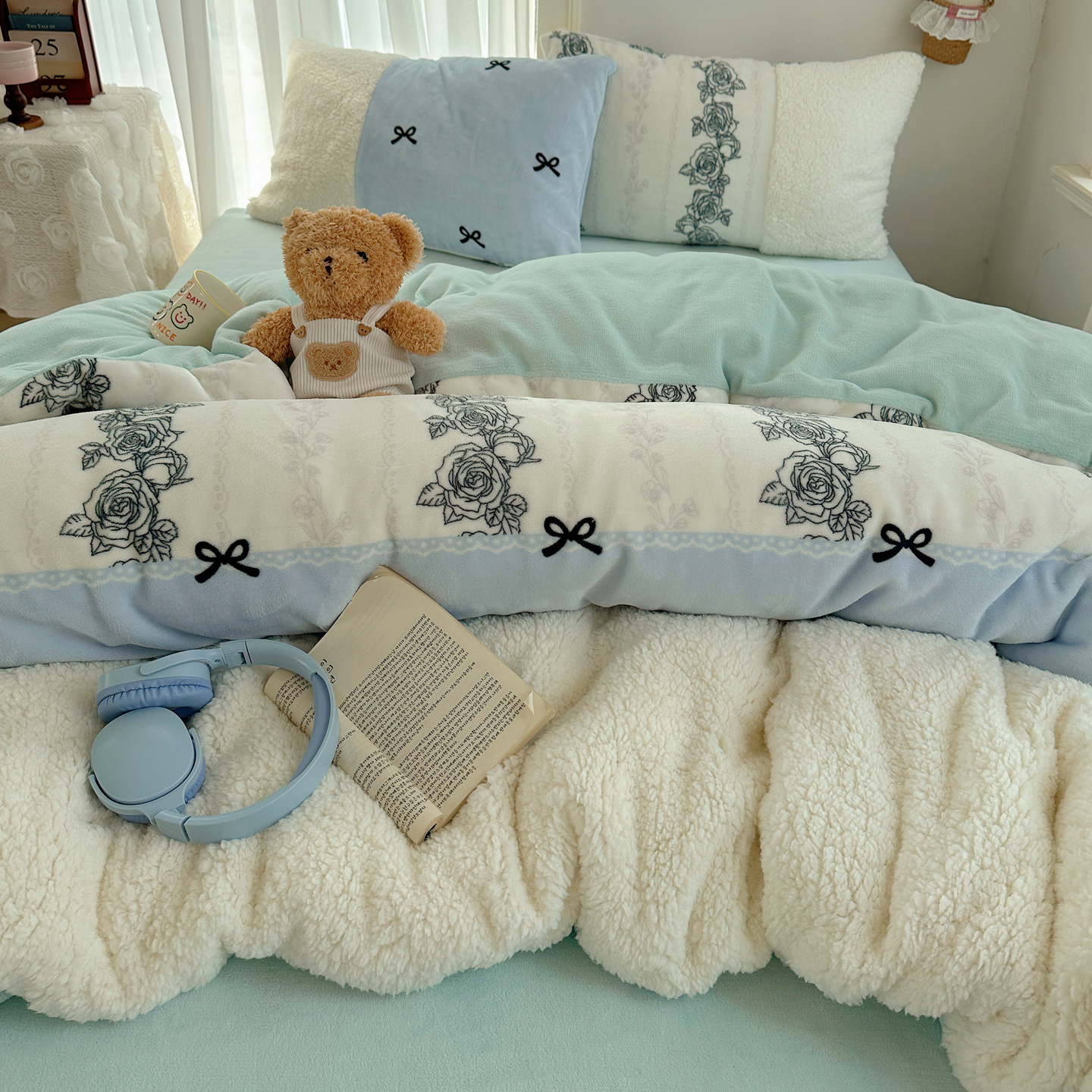 当前位置: 91家纺网 > 商品网购 > 床品套件 > 四件套 > 牛奶绒四件套 > 顾里家纺 2025新款ins韩风甜感羊羔拼接牛奶绒少女系四件套 玫瑰花园