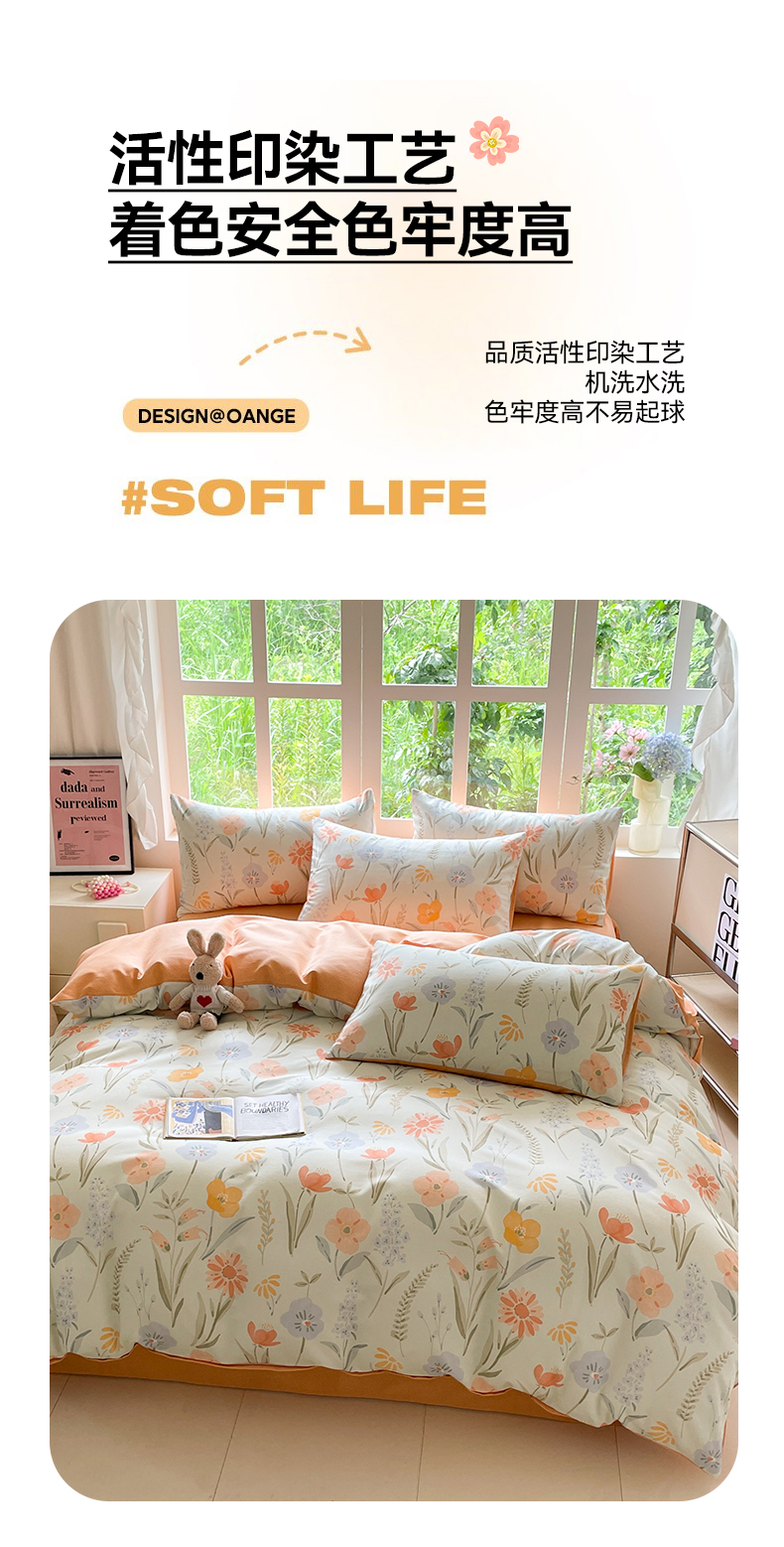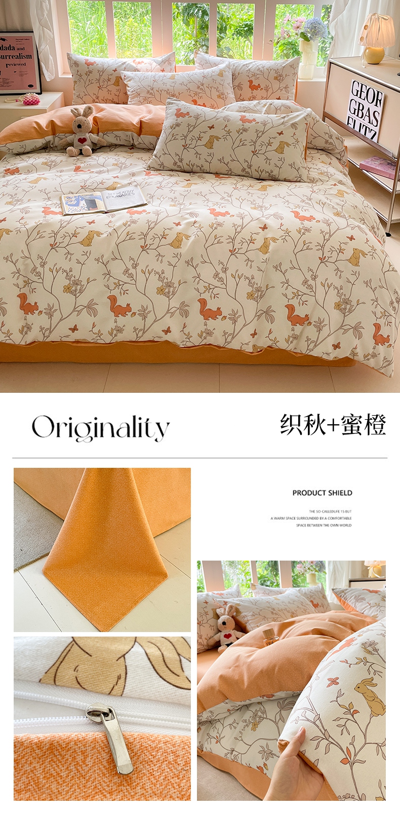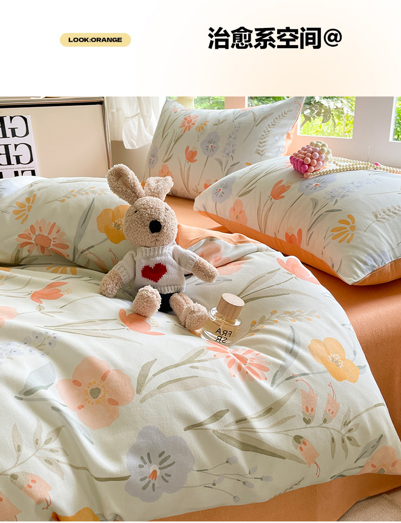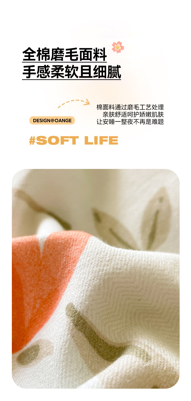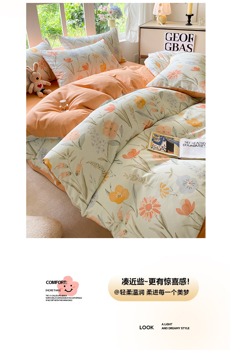 商品名称:本制 2025秋冬新款全棉混纺磨毛印花四件套 绿茵-蜜橙