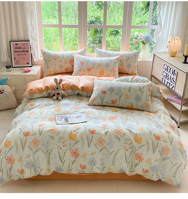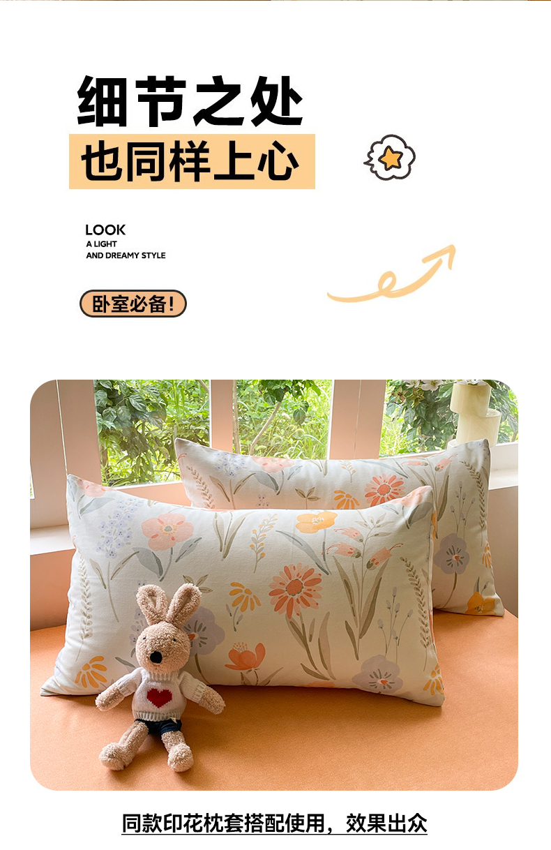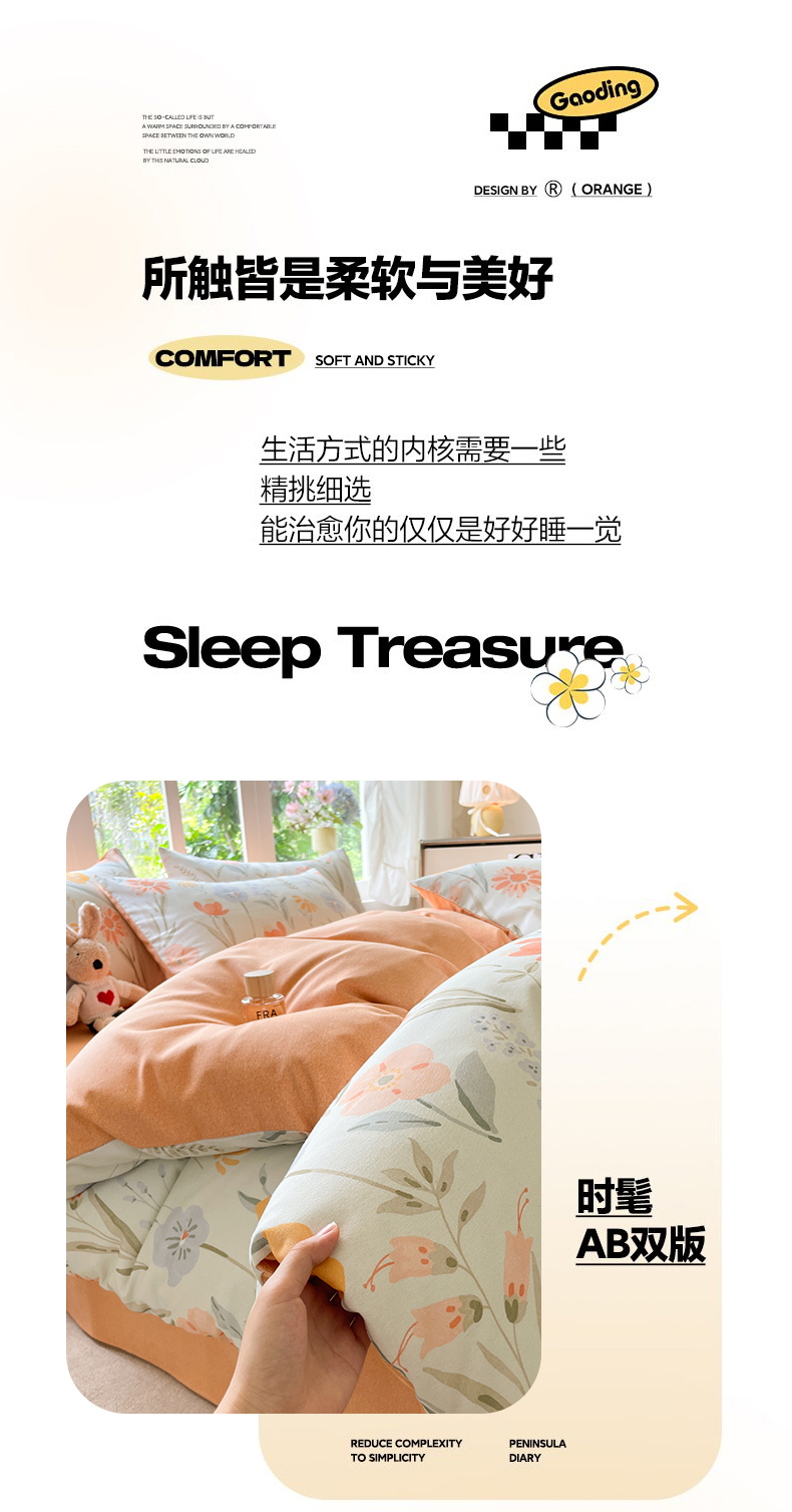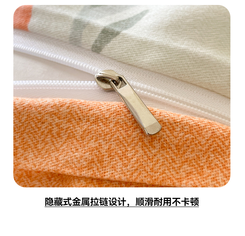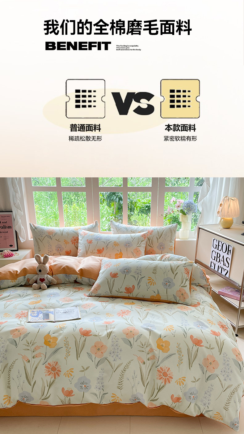 商品名称:本制 2025秋冬新款全棉混纺磨毛印花四件套 绿茵-蜜橙