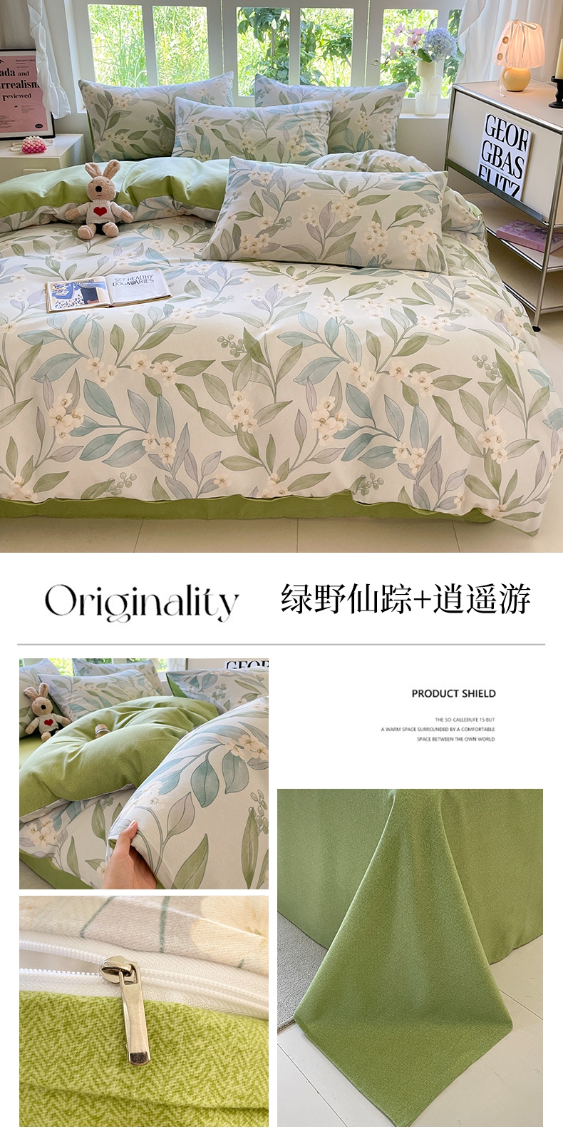 本制 2025秋冬新款全棉混纺磨毛印花四件套 绿茵-蜜橙