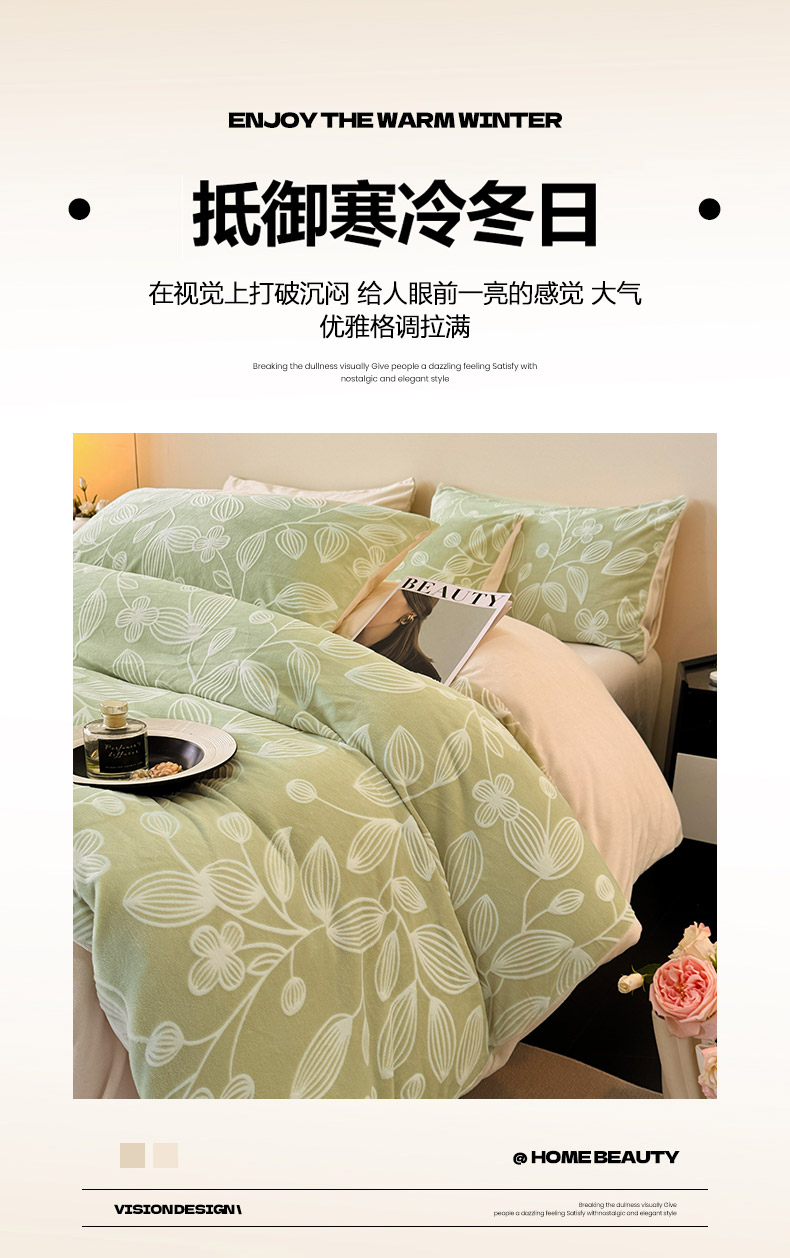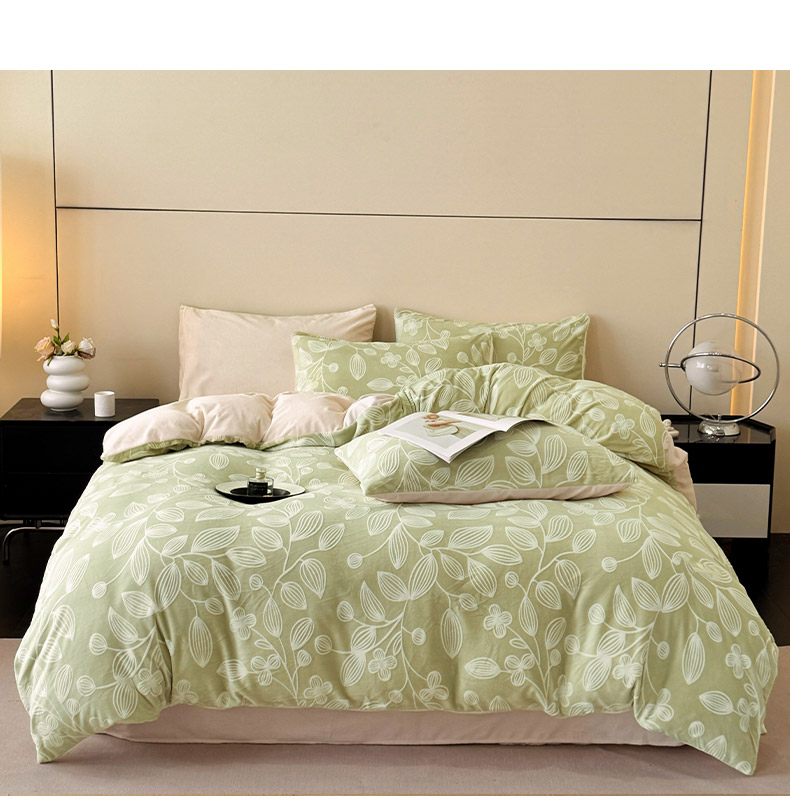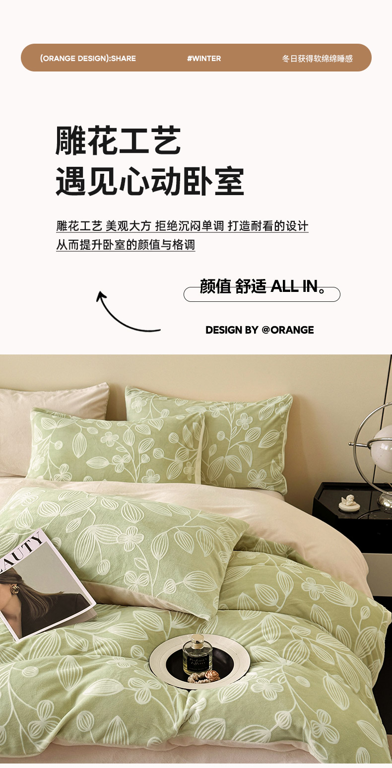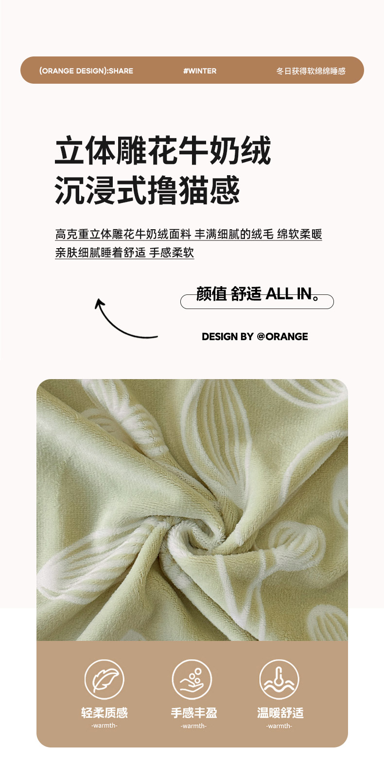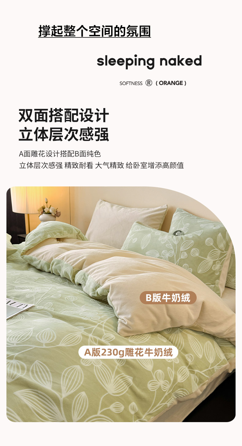 商品名称:吾秀家居 2025新款立体雕花牛奶绒四件套- 柔美系列 叶之舞