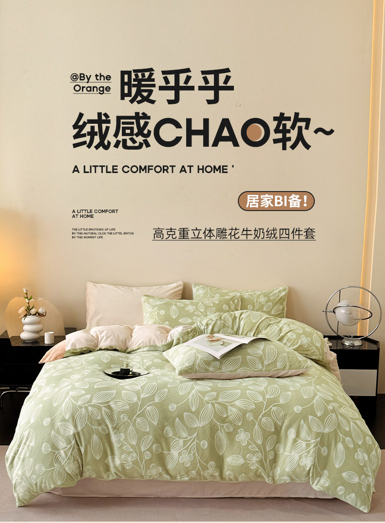 吾秀家居 2025新款立体雕花牛奶绒四件套- 柔美系列 叶之舞
