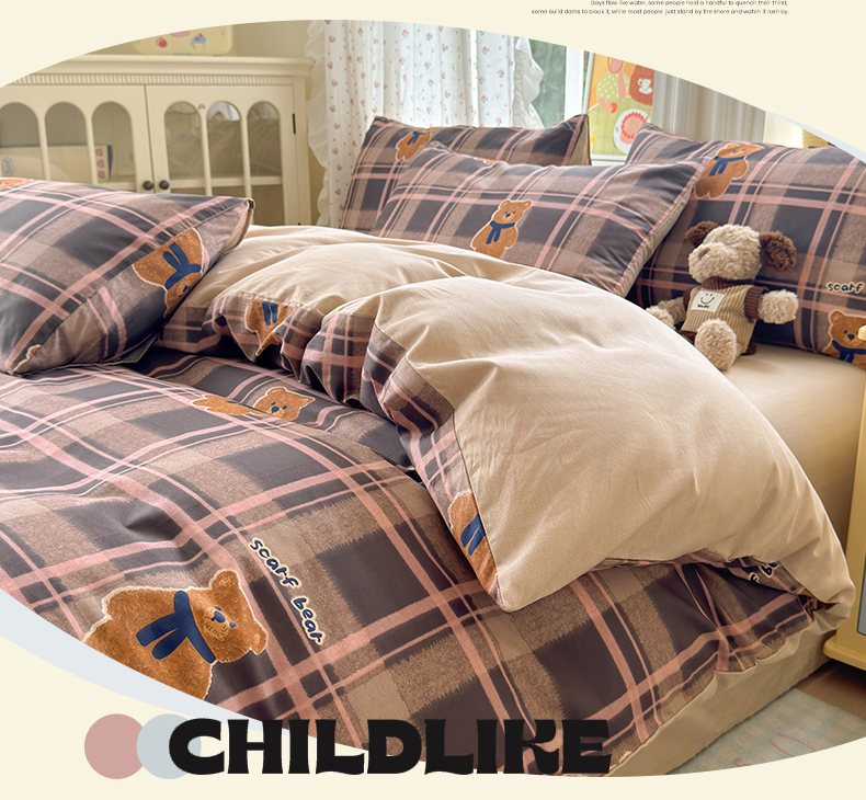 (总)清雅福 2026春夏新款INS小清新40支全棉13372四件套第一批,棒棒糖女孩,春之约定,点点小狗,动物聚会,豆丁小熊,粉心狗,富贵狗,果子象,含羞草,假日小狗
