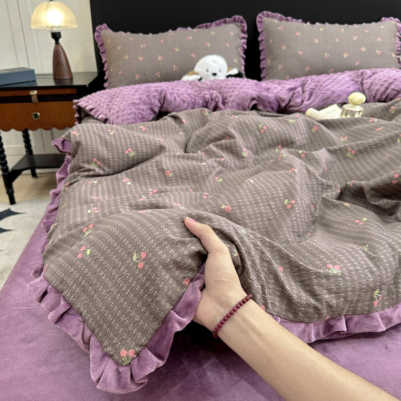 (总)仟网汇 2025新款亲肤舒适双面牛奶绒床盖款四件套,爱心灰,爱心紫,复古小花,黑珍珠,可可奶咖,蔷薇粉,丝绒蛋糕,胭脂,樱桃格趣,枝枝兔,妖姬,紫波点,豆蔻年华,朵缦,赫本,黑糖珍珠,樱桃派,豹纹kt咖